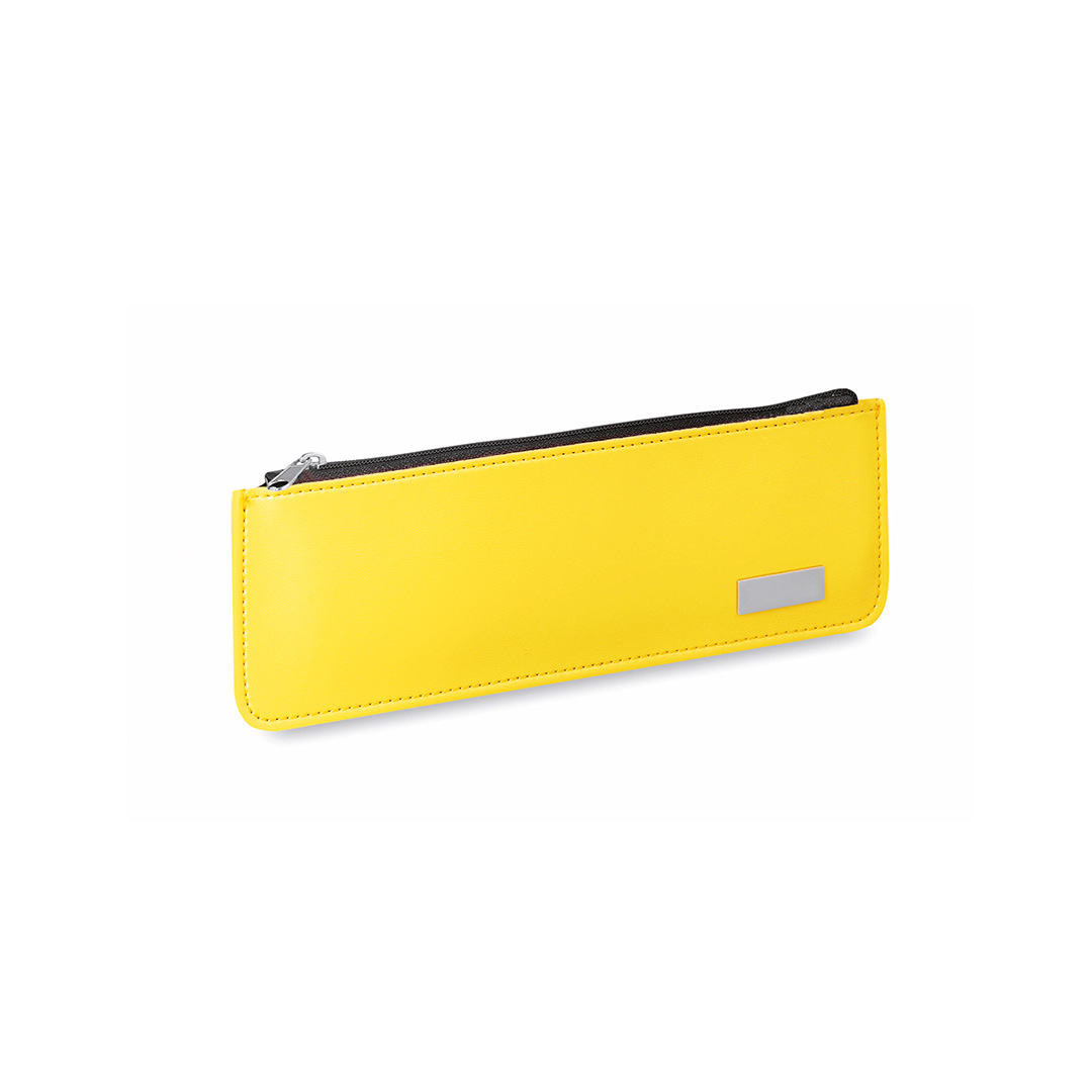 Estuche de cremallera con suave cuerpo acabado en polipiel de vivos colores y costuras de refuerzo. Con chapa metálica frontal especialmente diseñada para marcaje en láser.
