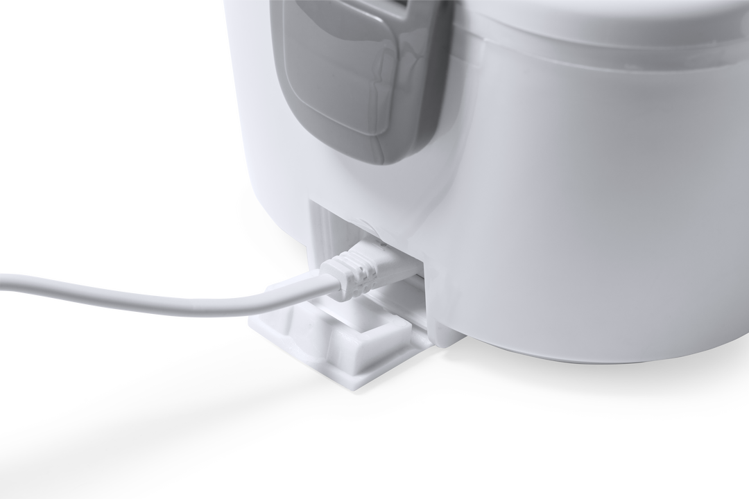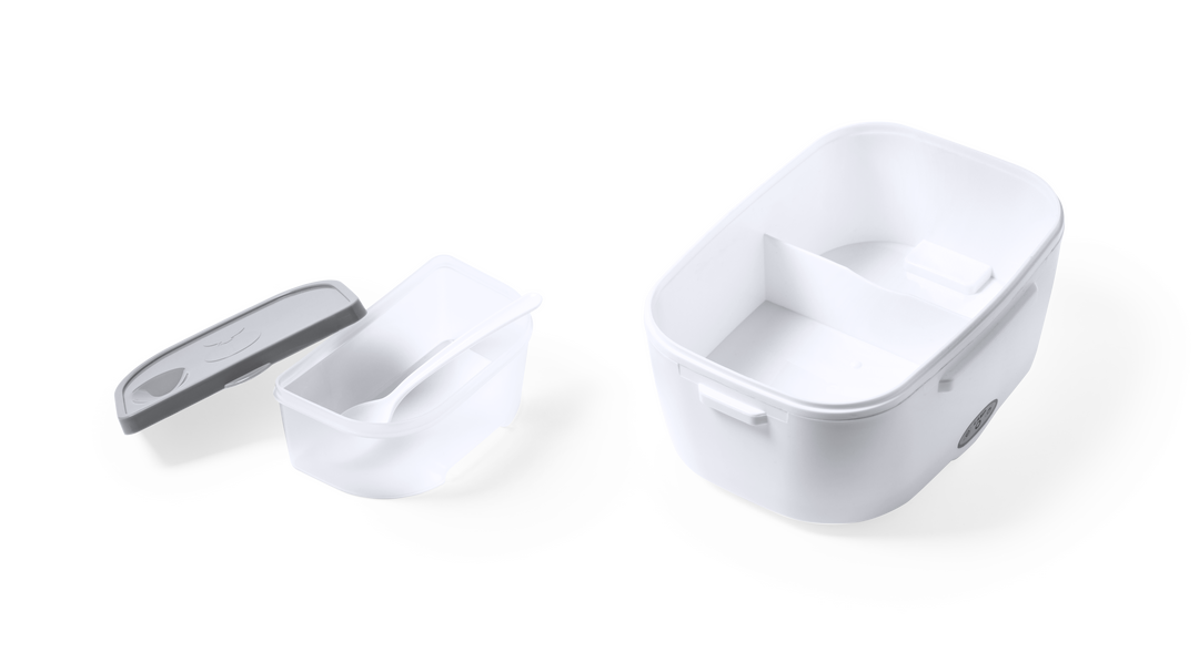 Fiambrera eléctrica de 1l de capacidad . Fabricada en resistente ABS libre de BPA y en diseño bicolor. Incluye práctica asa de transporte y tapa hemética con cierres de seguridad laterales. 2 compartimentos principales y compartimento auxiliar con cierr 1 L. Cable Incluido
