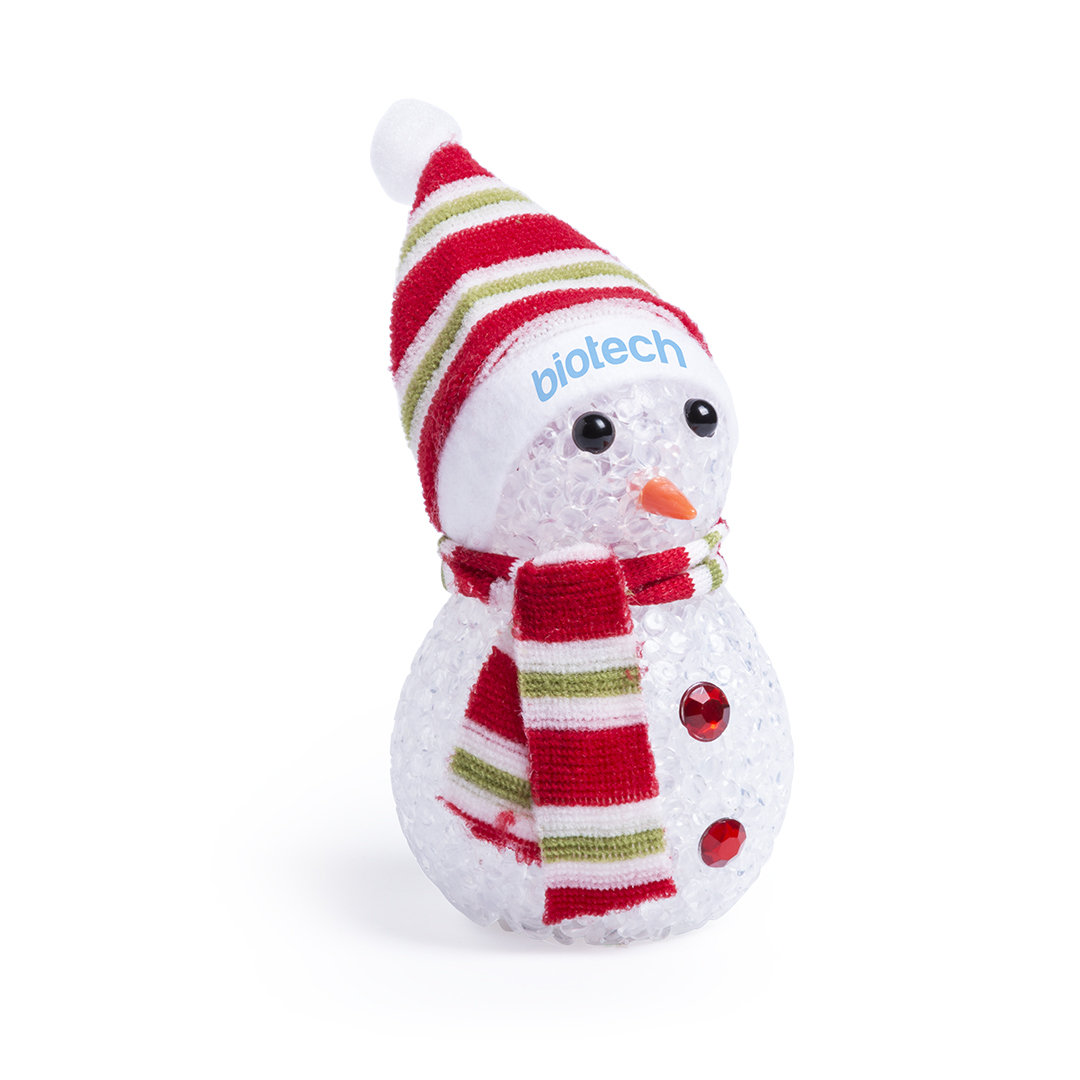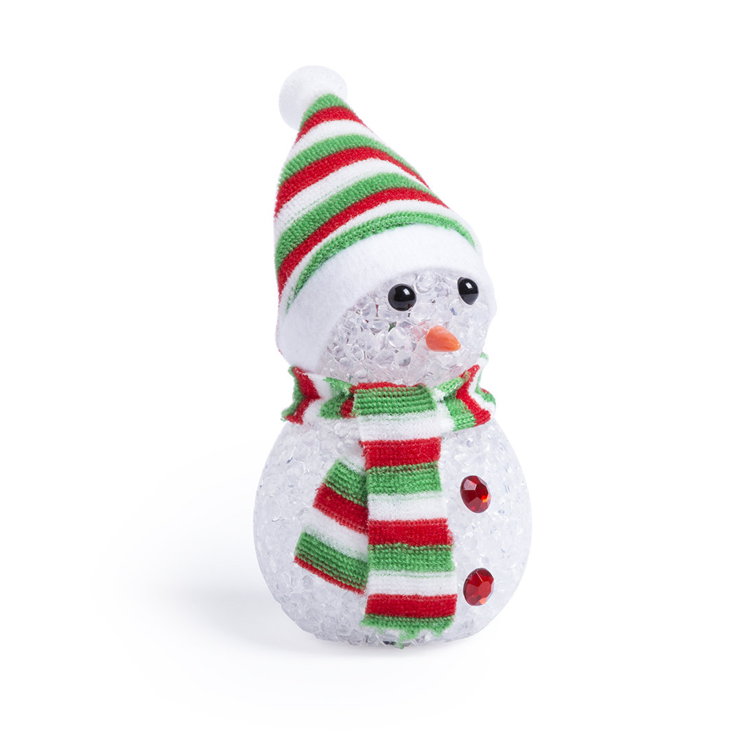Figurita navideña muñeco de nieve con luz led interior multicolor. Incluye 3 pilas de botón. Presentada en caja individual de diseño. 1 Led. Pilas Botón Incluidas