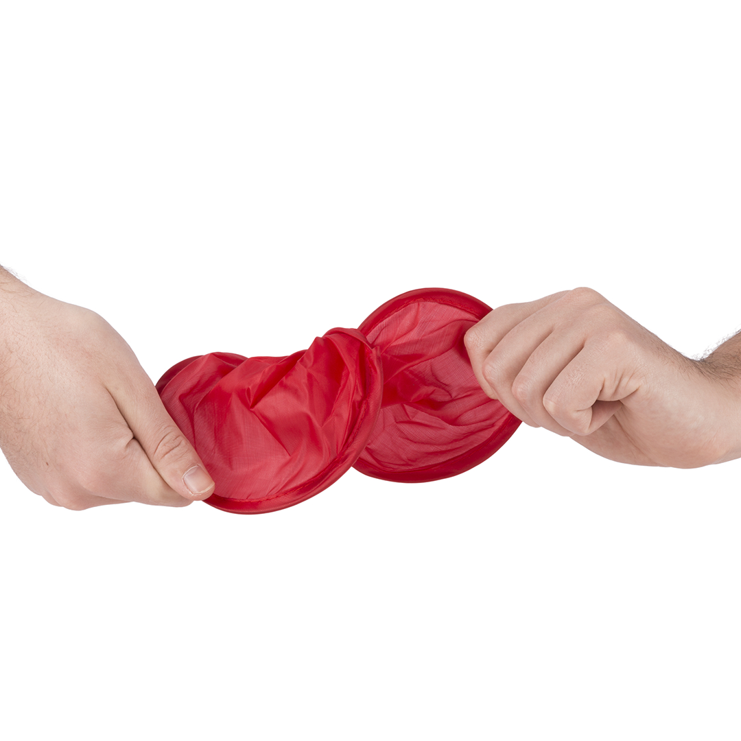 Frisbie plegable en poliéster de vivos colores, con funda individual a juego y fácil sistema de plegado para tamaño compacto. Plegable