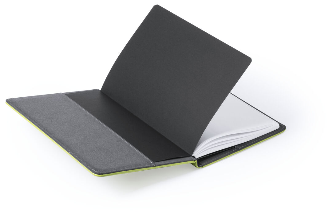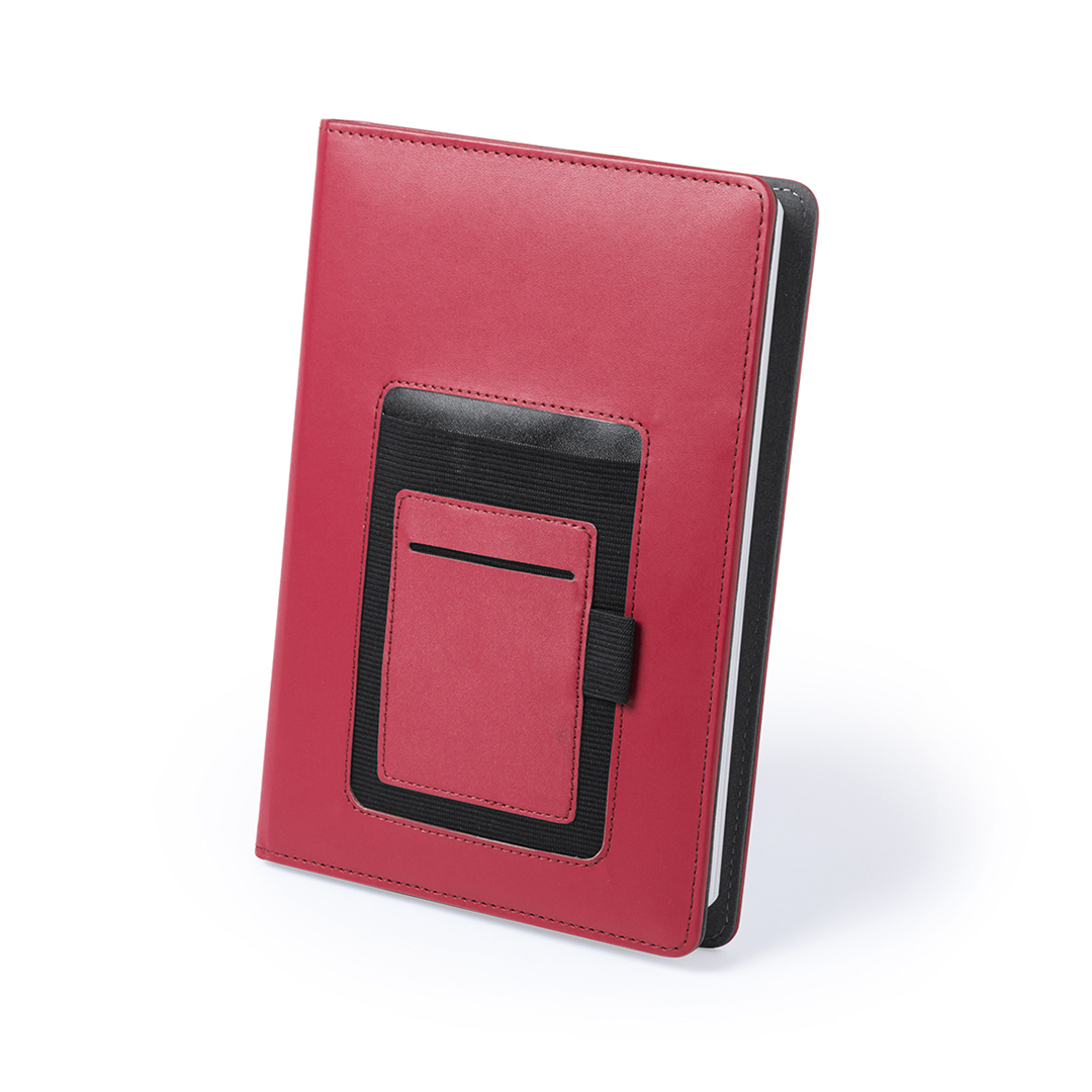 Funda para bloc de notas con tapas de suave tacto acabadas en polipiel, con funda de dos compartimentos y soporte elástico para bolígrafo integradas en portada. Incluye bloc de notas de 100 hojas lisas y funda interior para un perfecto ajuste de las tapas 100 Hojas