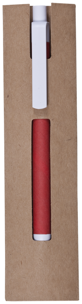 Funda para bolígrafo en resistente cartón reciclado de color natural y con diseño de ventana.