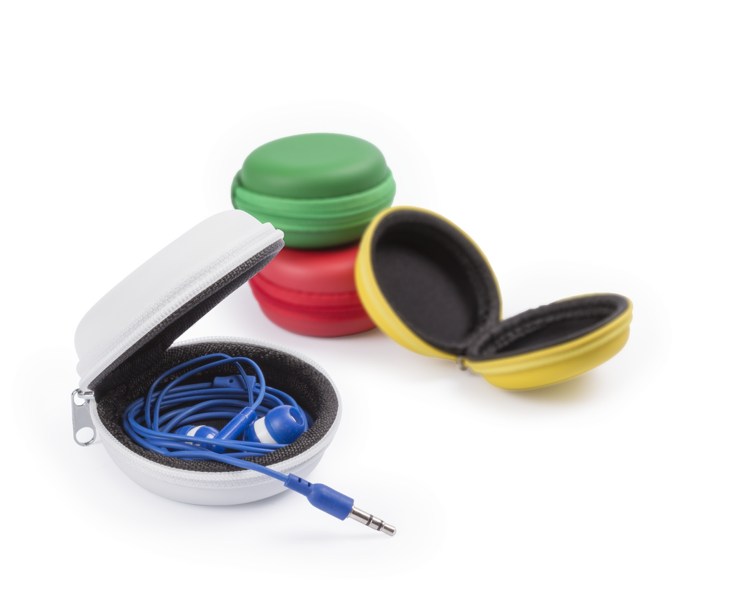 Funda para memoria USB con en desenfadados colores, con cremallera a juego y de acabado en suave polipiel.
