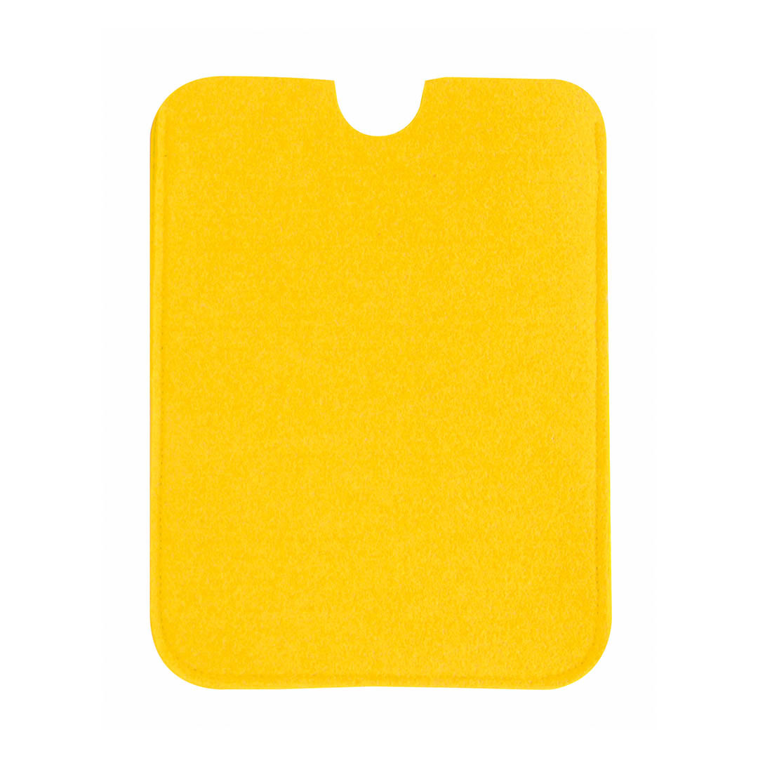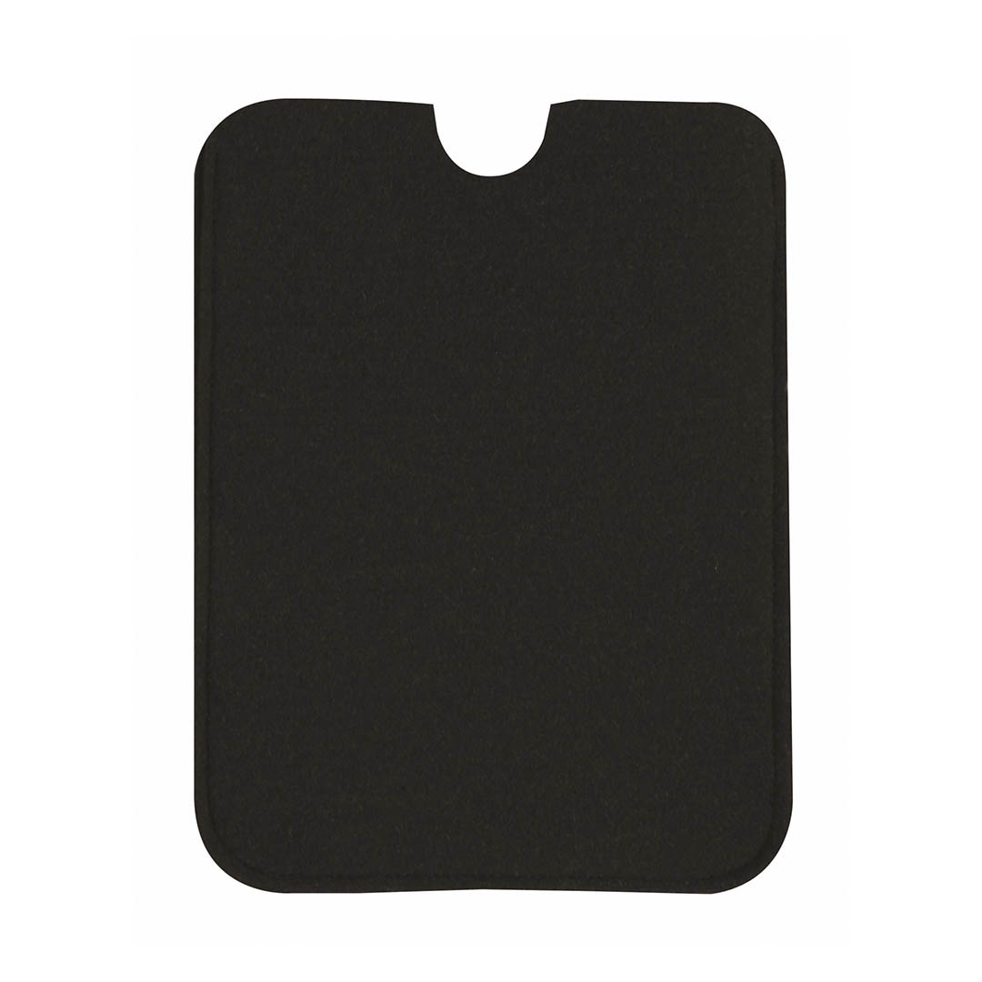 Suave funda de fieltro para tablets de hasta 10 pulgadas. En sobrios colores, cierre elástico con accesorio de ajuste. Doble función de funda y paño limpiador para pantalla.
