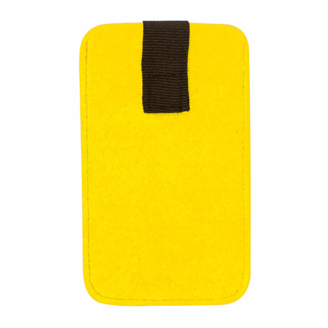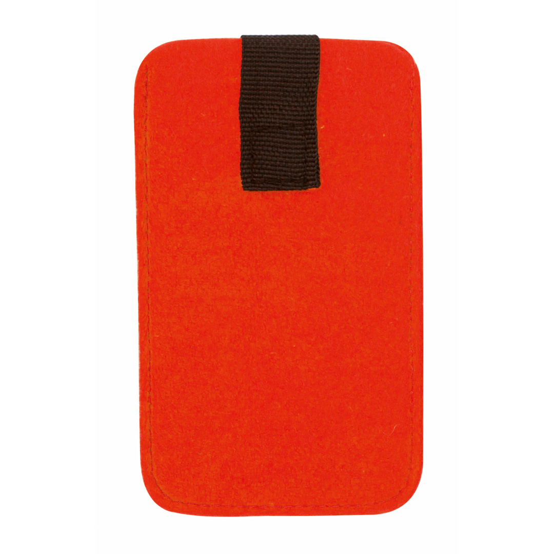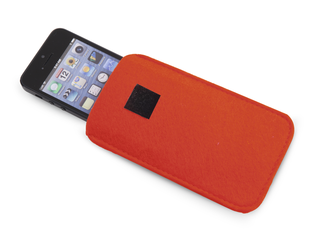 Práctica funda para smarthone en suave fieltro de llamativos colores y cierre con tira de velcro.