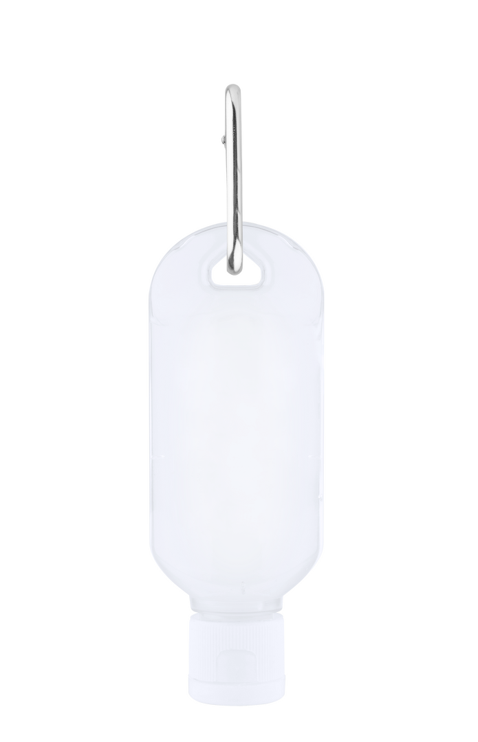Gel hidroalcohólico para higiene y limpieza de la piel en bote rellenable de 30 ml. Cuerpo en color transparente, con dosificador, tapón de seguridad y mosquetón para transporte / fijación. Solución con 65% de contenido de alcohol. Artículo con certificac 30 ml. Solución para la limpieza de la piel