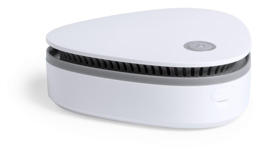 Generador de ozono de elegante y discreto acabado en color blanco sólido. Gracias al poder higienizante y desinfectante del ozono, se eliminan bacterias y otros microorganismos patógenos, eliminando también los malos olores del lugar tratado, siendo la e Recargable USB. Cable Incluido
