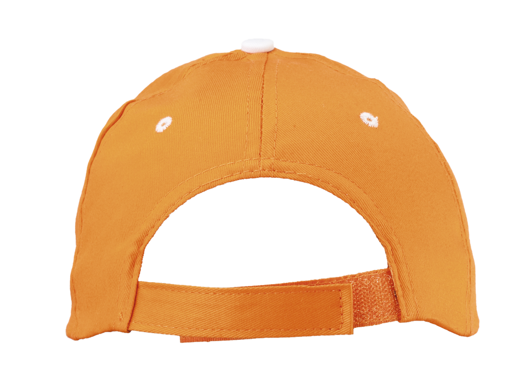 Gorra de 5 paneles en material 100% algodón peinado. En variada gama de vivos colores y con sandwich en color blanco. Orificios de ventilación bordados y cierre ajustable de velcro.