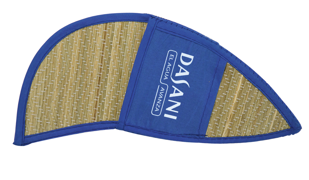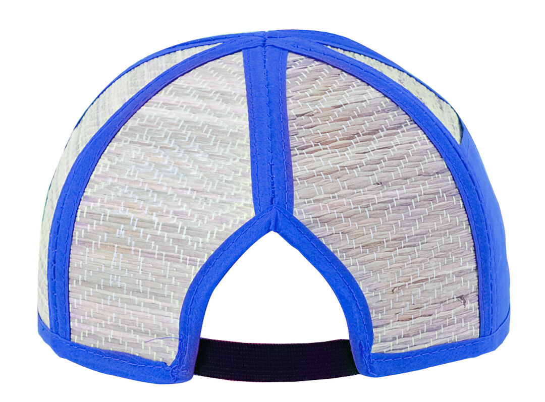 Gorra plegable de paja de 6 paneles con ribetes en vivos colores, cierre elástico ajustable y bolsillo lateral para fácil marcaje. Plegable