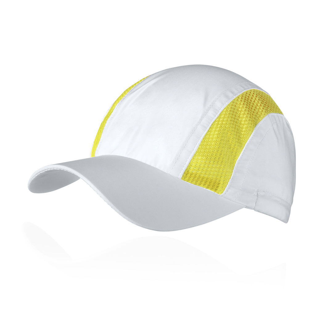 Gorra deportiva de 5 paneles en suave microfibra de diseño bicolor en extensa gama de vivos colores. Cierre elástico con accesorio de ajuste y paneles de redecilla para el sudor.