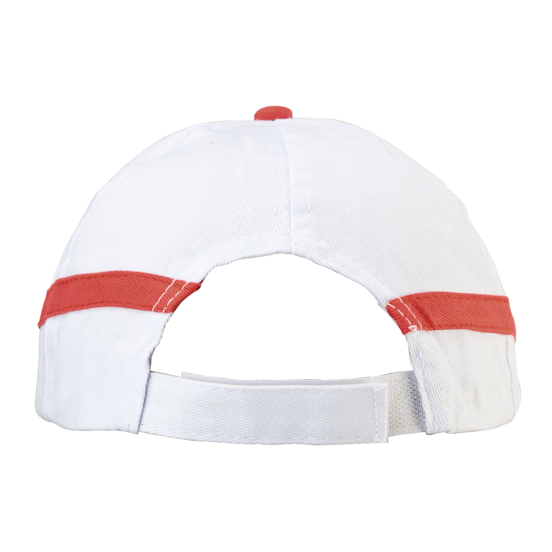 Rojo / BlancoGorra de 5 paneles en material 100% algodón. En variada gama de vivos colores, con ribete en visera y laterales. Orificios de ventilación bordados y cierre ajustable de velcro.