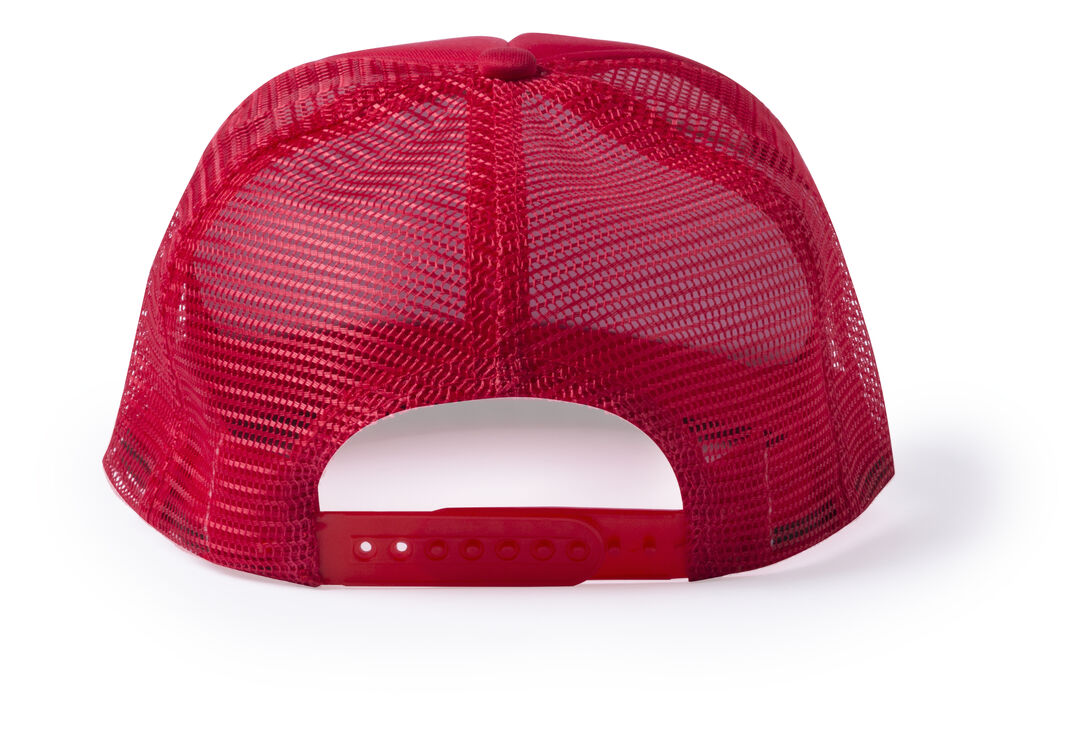 Gorra de 5 paneles con visera plana acolchada y parte trasera en redecilla a juego. Material 100% poliéster de suave acabado, con cierre ajustable de botones y en variada gama de vivos colores.