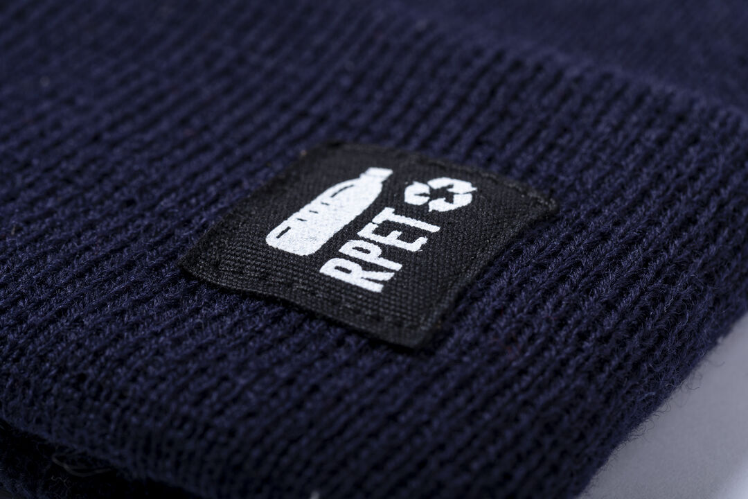 Suave y cálido gorro de punto de línea nature y en poliéster RPET, elaborado a partir de plástico reciclado para así fomentar la reutilización de residuos plásticos y contribuir a la sostenibilidad del planeta. Con dobladillo en frontal y disponible en va