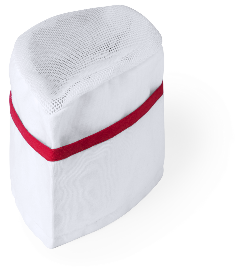 Blanco / RojoGorro de cocina en y cómodo material TC -combinado de algodón y poliéster- en alegre combinación de color blanco con accesorios en vivos colores. Ajustable