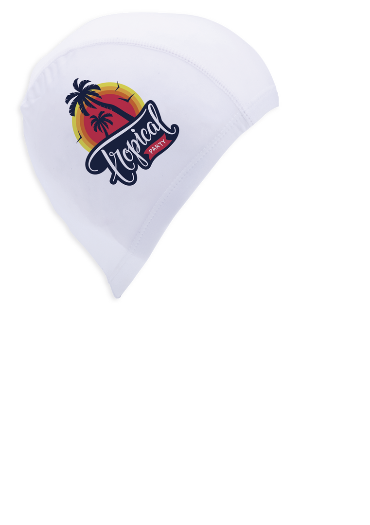 Gorro para piscina en material spandex de vivos colores que proporciona un sólido y suave ajuste en la cabeza.