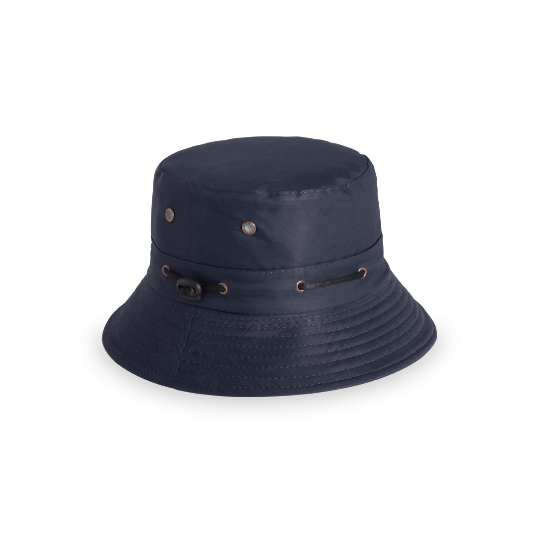 Gorro en resistente poliéster de vivos colores. Con orificios de ventilación laterales reforzados con argollas metálicas y cordón con accesorio de ajuste.