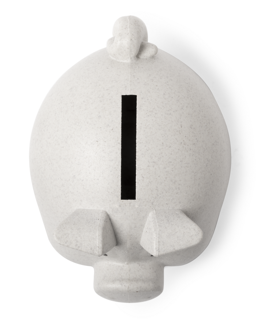 Hucha de línea nature con forma de cerdito, para ahorrar a la vez que se cuida del medio ambiente.