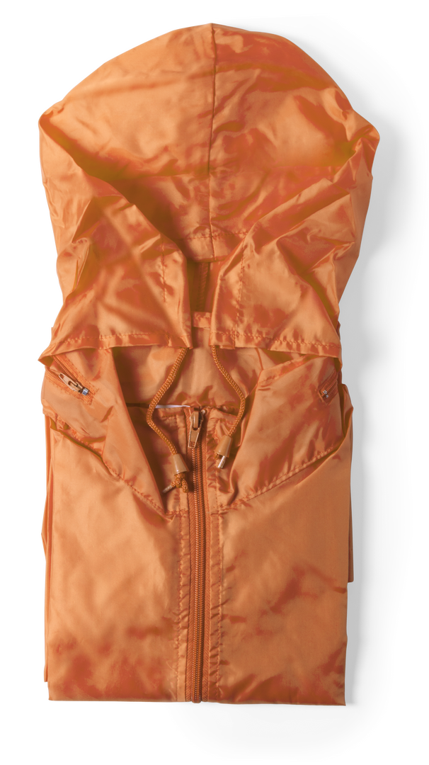 Impermeable en resistente poliéster 190T en variada gama de colores. Con capucha de cremallera integrada en cuello y cordones de ajuste, cierre principal de cremallera y bolsillos laterales. Disponible en tallas M-L, XL-XXL. Tallas: M-L, XL-XXL