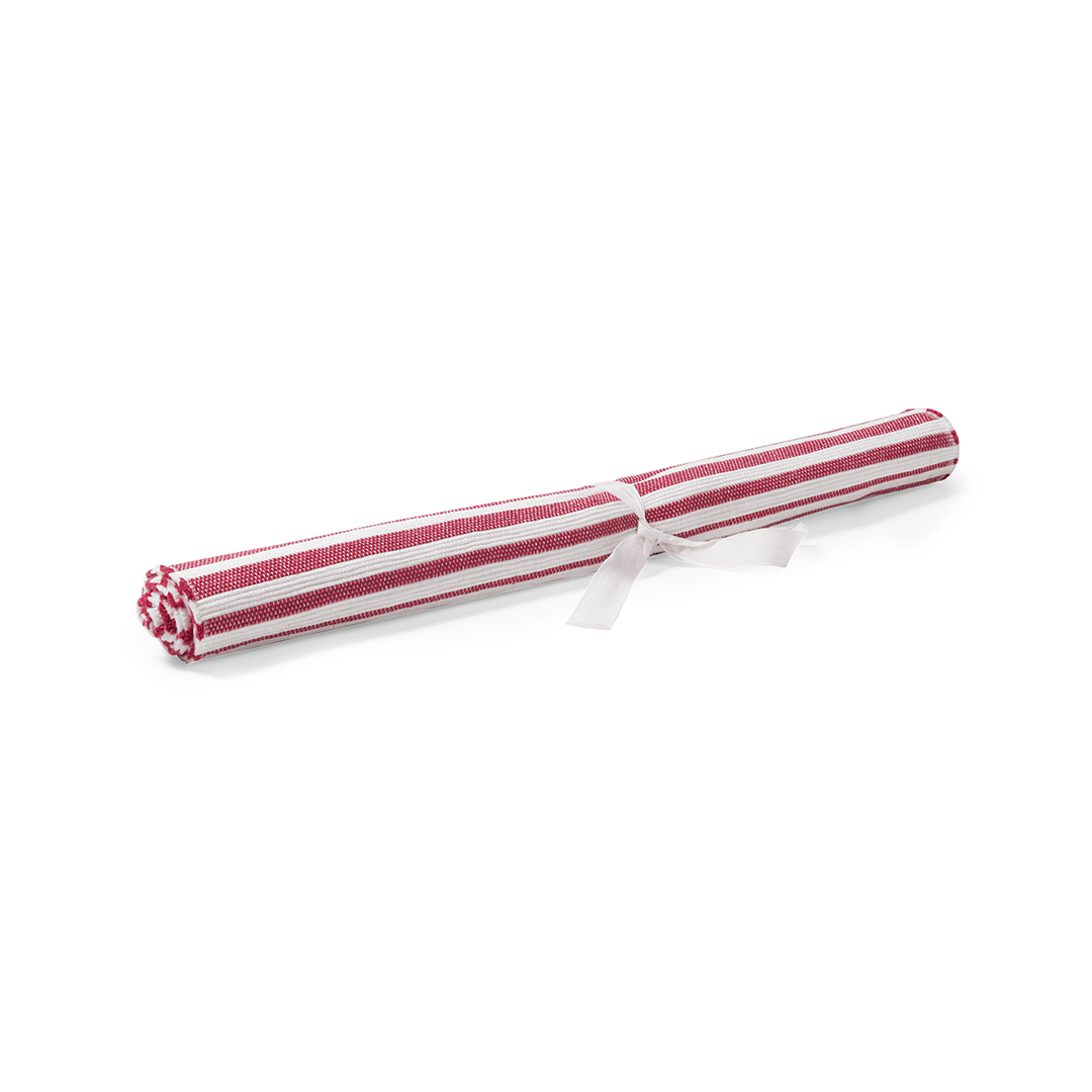 RojoResistente esterilla de poliéster de 180x70cm en original diseño bicolor a rayas. Con cinta para enrollado.