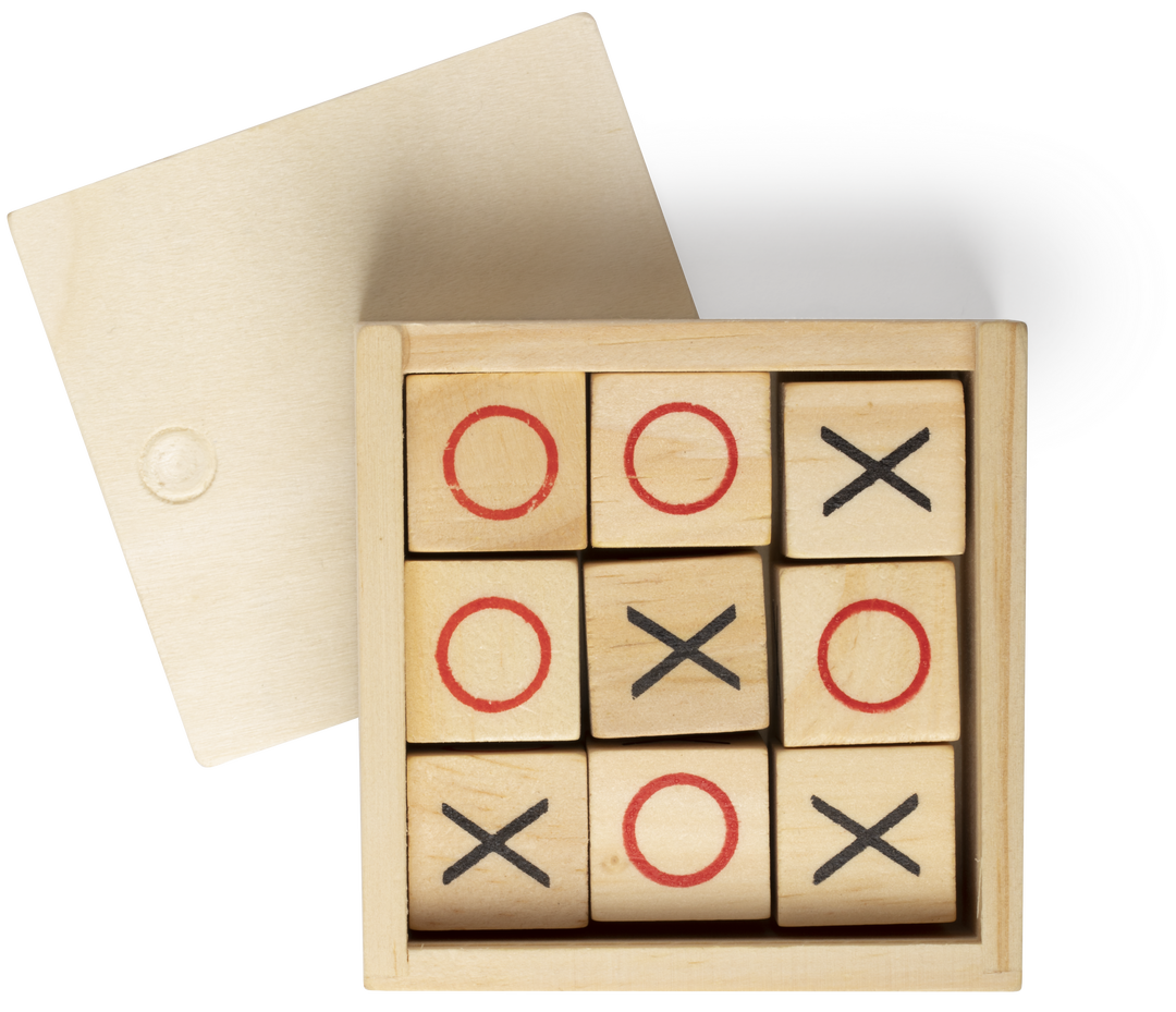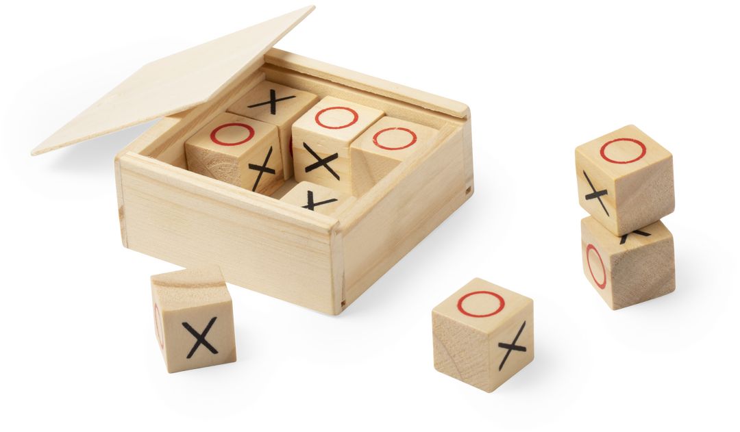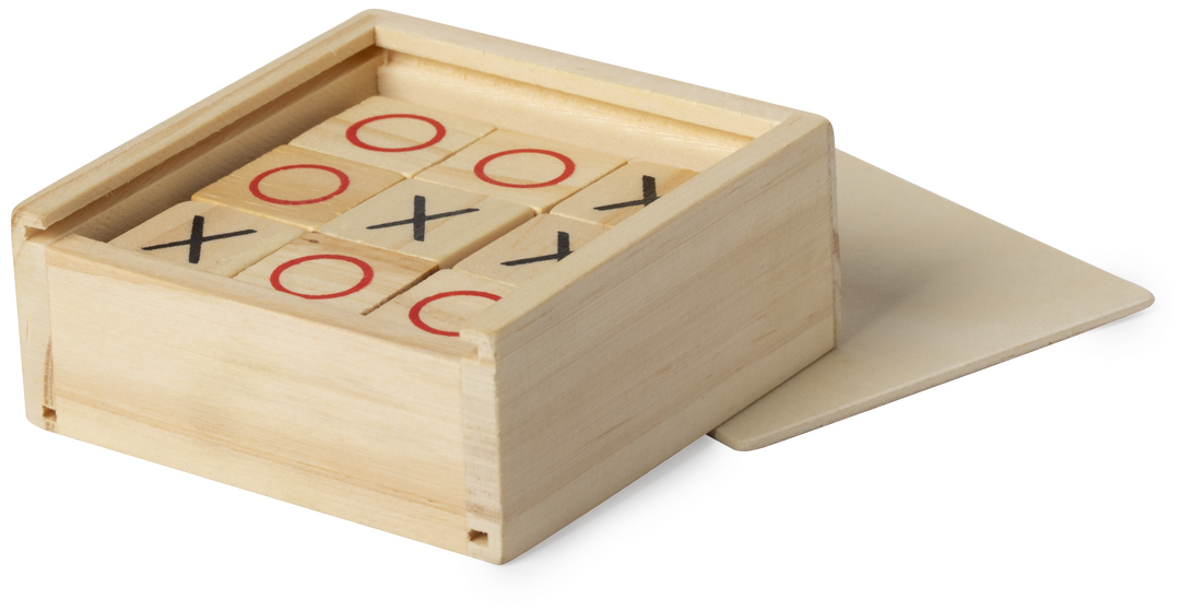 Juego de mesa en madera, presentado en estuche individual con tapa deslizante. 9 Piezas