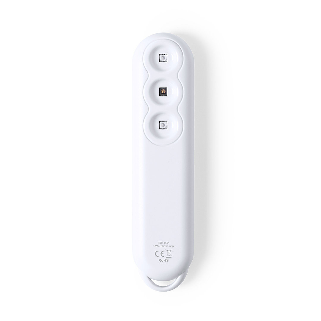 Lámpara esterilizadora de luz ultravioleta tipo C. Especialmente diseñada para la eliminación de microorganismos y bacterias en objetos de uso cotidiano como el smartphone, el carrito de la compra, el volante del coche o la ropa. Fácil de usar, basta con Luz Ultravioleta. Recargable USB. Cable Incluido