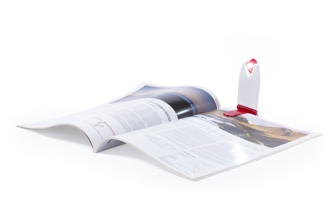 Lámpara led de lectura de diseño bicolor. De cuerpo plegable, con luz adaptable y cómoda pinza de sujeción. Presentada en bolsa de diseño con autocierre. 1 Led. Pilas Botón Incluidas