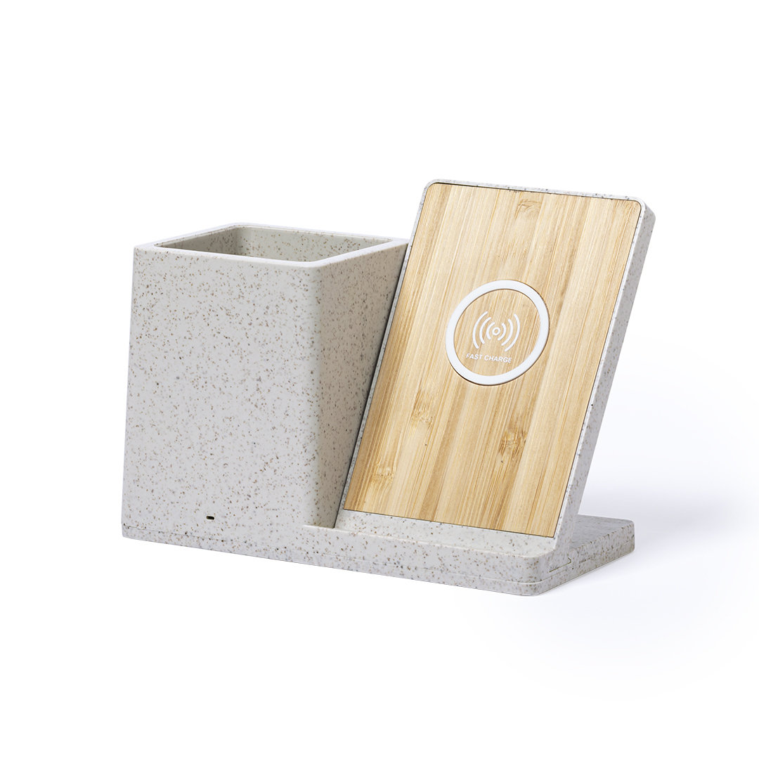 Lapicero cargador inalámbrico de línea nature y carga rápida 10W. Carcasa en caña de trigo y base de carga en bambú para así fomentar la utilización de materias primas naturales y reducir las emisiones contaminantes. Compatible con smartphones con tecnol Inalámbrico. Carga Rápida 10W. Cable Incluido