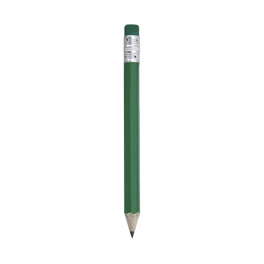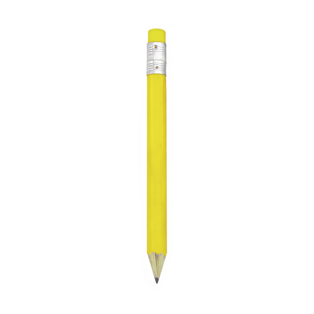 Minilápiz de madera con cuerpo hexagonal en brillantes colores y con goma de borrar a juego. Punta afilada.