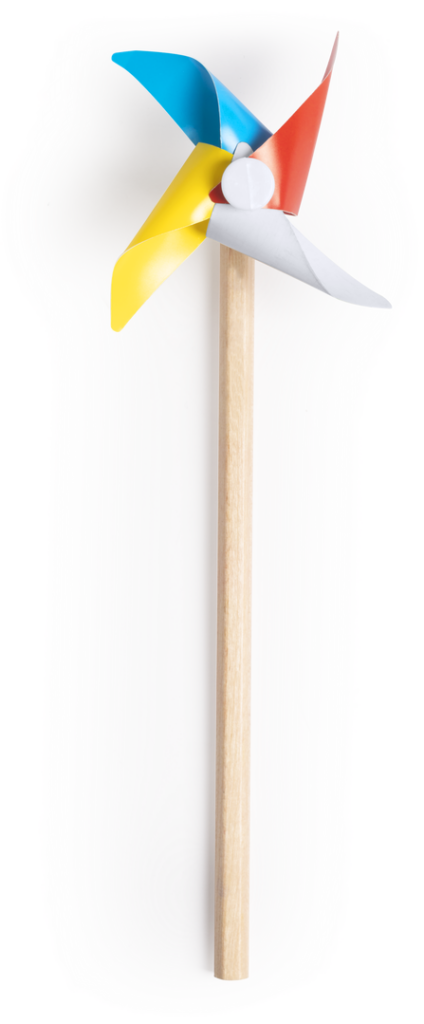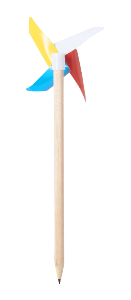Divertido lápiz de madera en diseño hexagonal y con molinillo multicolor. Servido sin afilar.