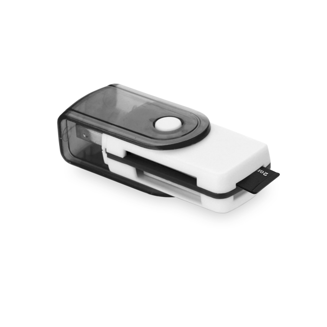 Original lector de tarjetas de apertura giratoria, con conexión USB 2.0 y en divertidos diseños bicolor. Compatible con tarjetas M2, MS Duo, micro SD y SD. Presentado en caja individual. Tarjetas: M2, MS Duo, MicroSD, SD