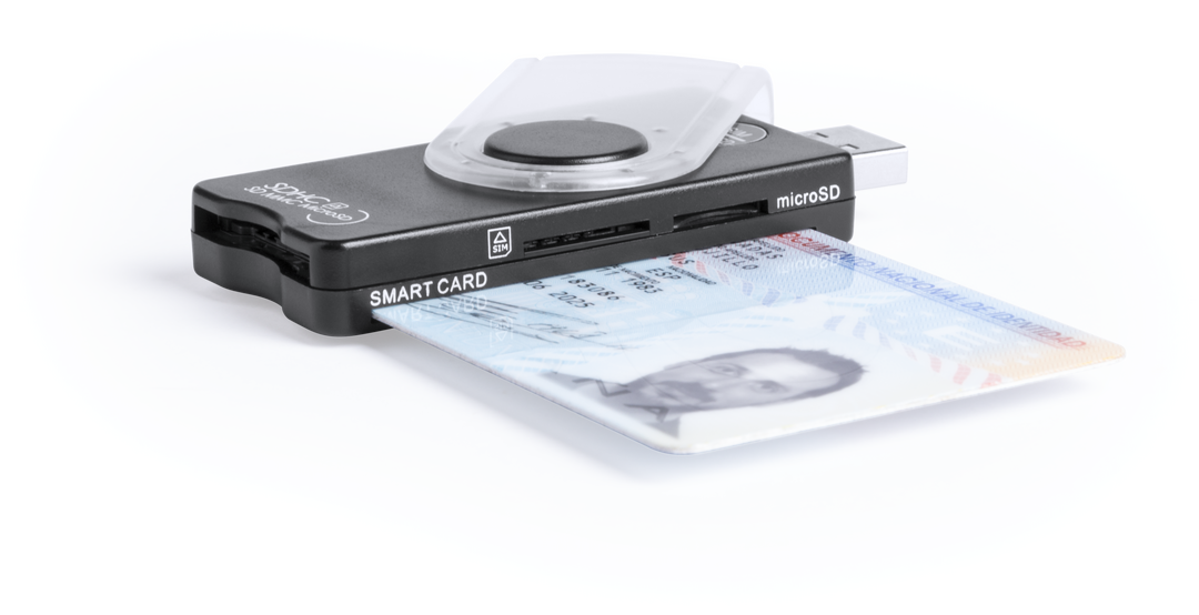 Práctico lector de DNI/Smart Card con conexión USB 2.0. De apertura giratoria y diseño minimalista, integra además ranuras para tarjetas de memoria tipo MS, M2, SD, MiniSD, SmartCard, SIM y MicroSD. Compatible con Windows y macOS. Presentado en caja indiv USB 2.0. Tarjetas: MS, M2, SD, MiniSD, Smart Card, SIM, MicroSD
