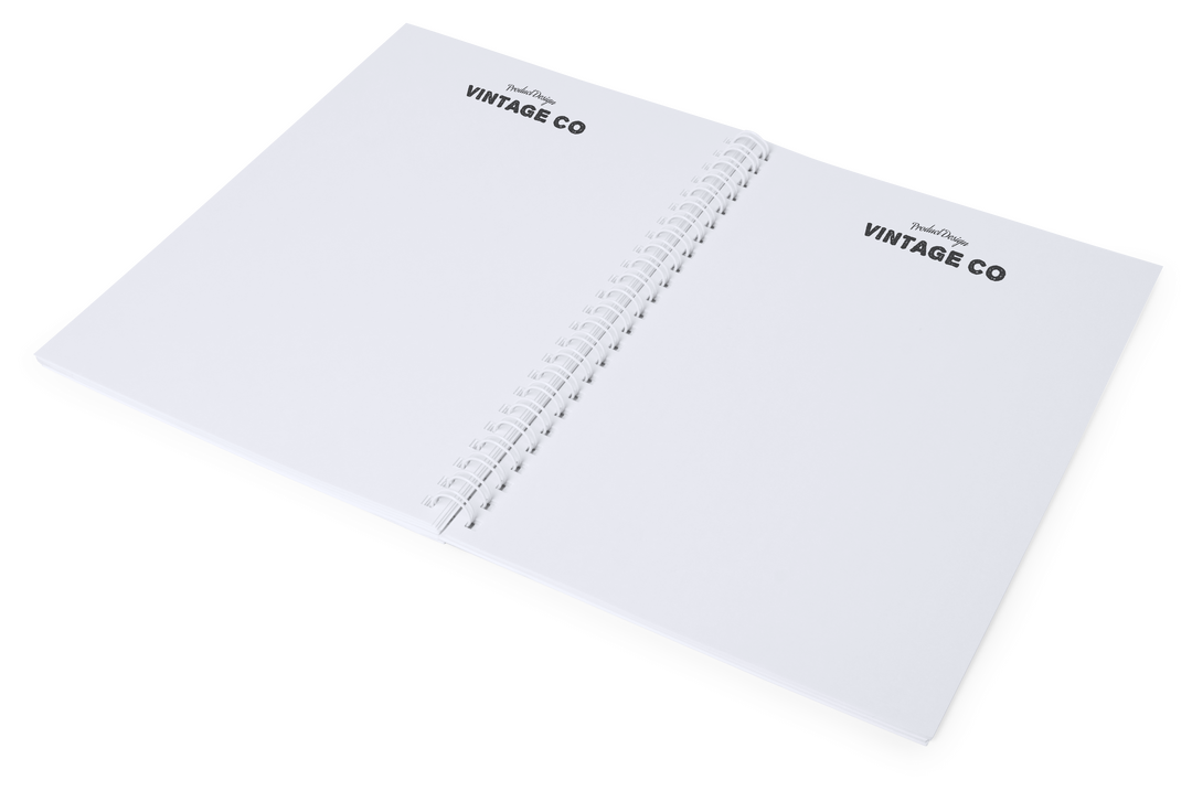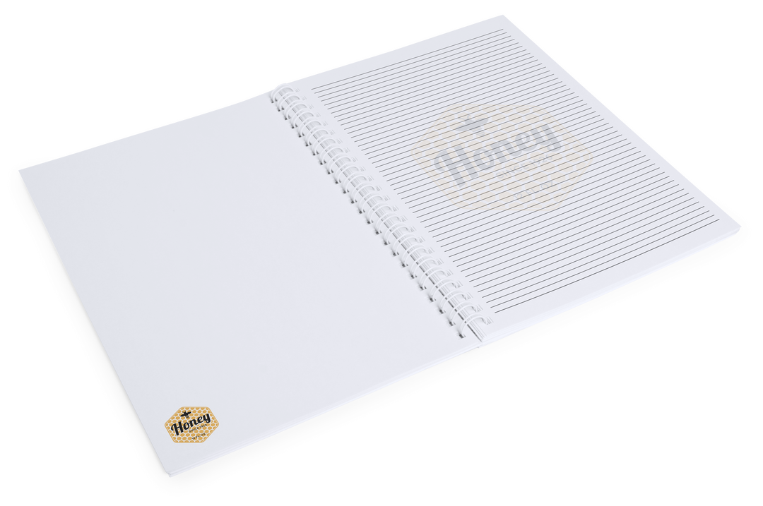 Libreta de anillas blancas con tapas de cartón rígidas de suave acabado brillante. Con 50 hojas lisas y especialmente diseñada para personalización a partir de pedidos de 250 unidades. 50 Hojas