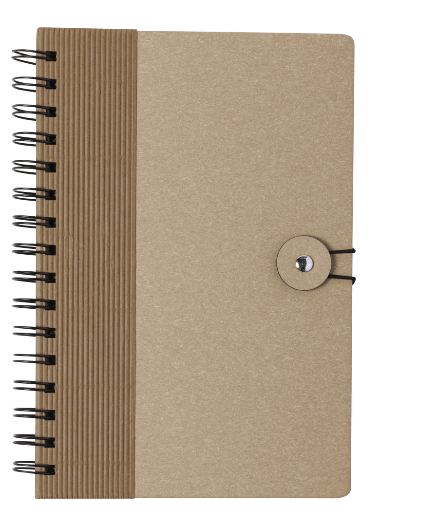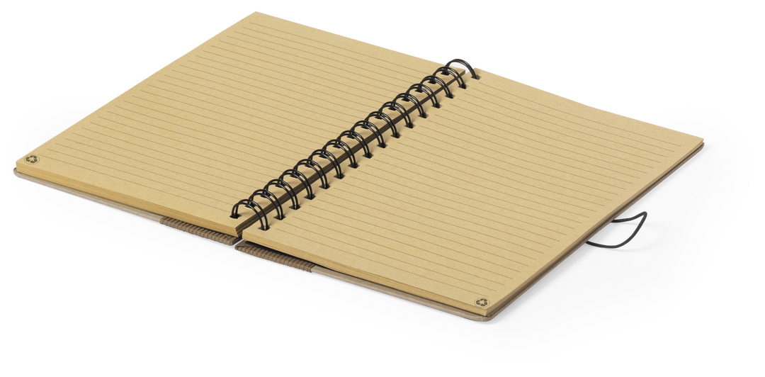 Libreta de anillas en línea nature. Con tapas rígidas de original diseño en cartón reciclado y cierre elástico. De 80 hojas con diseño eco y disposición a una raya. Portada Rígida. 80 Hojas