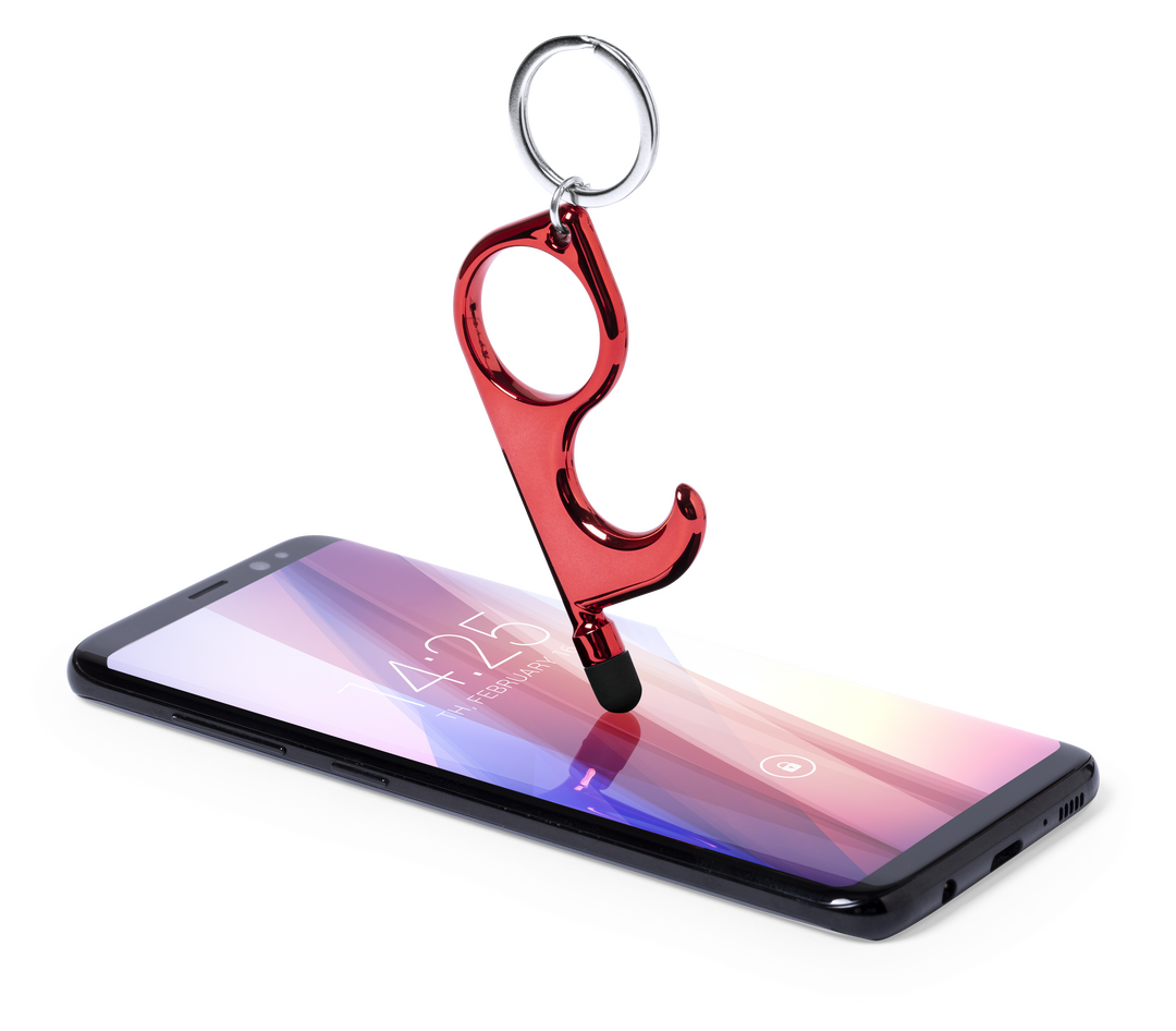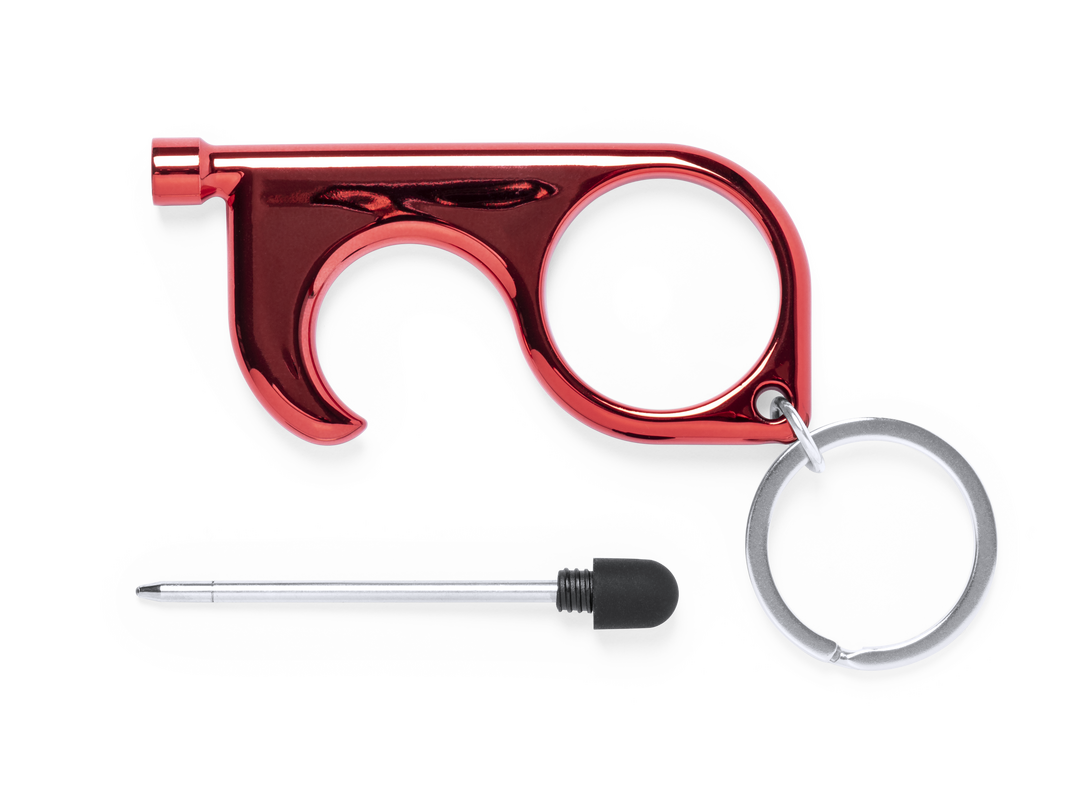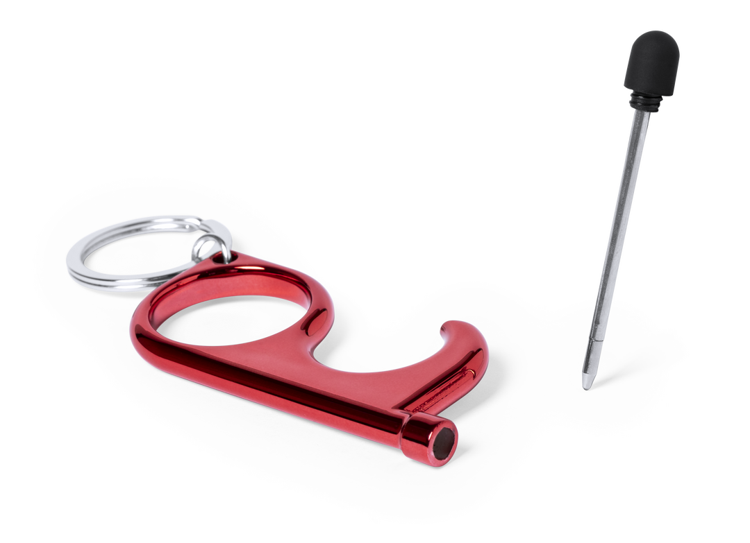 Llavero higiénico anti-contacto con bolígrafo y puntero integrados. Fabricado en resistente ABS de acabado metalizado y disponible en variada gama de colores. Especialmente diseñado para evitar tocar con las manos superficies de uso común (manivelas de pu Bolígrafo Puntero Incluido