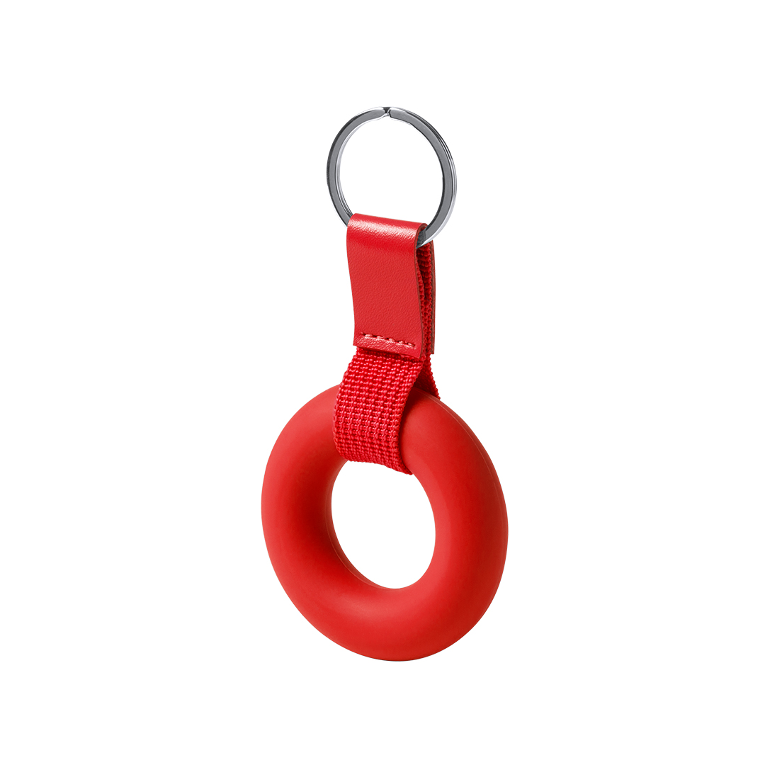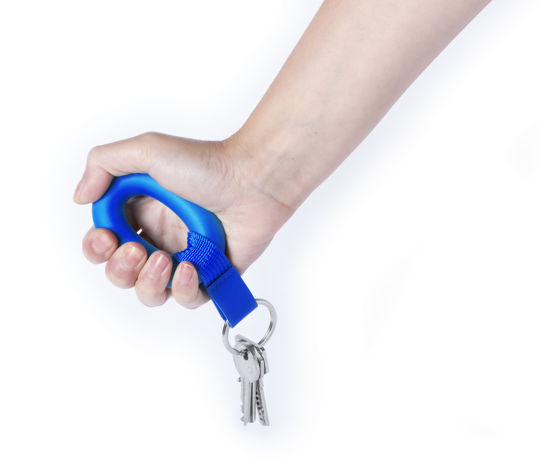 Original llavero antiestrés con cuerpo en suave TPR en variada gama de vivos colores. Con cinta de poliéster y refuerzo de polipiel a juego.