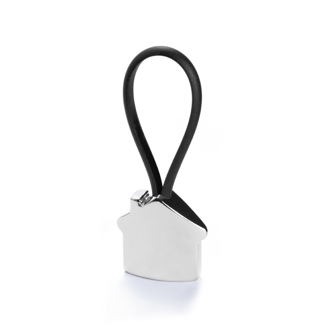 Llavero metálico en divertido diseño 3D de casa. Con cinta de goma en variados y vivos colores.