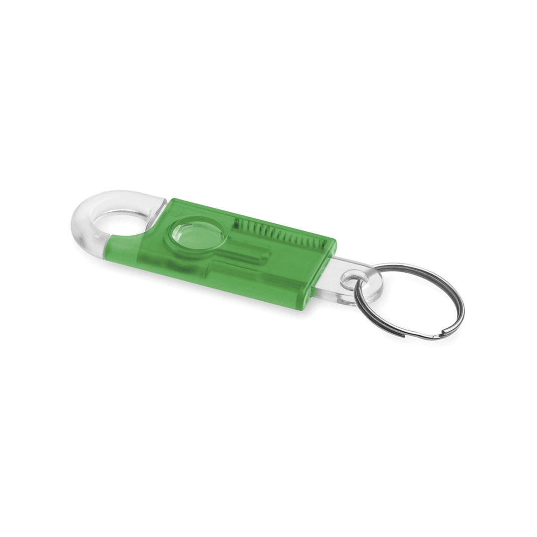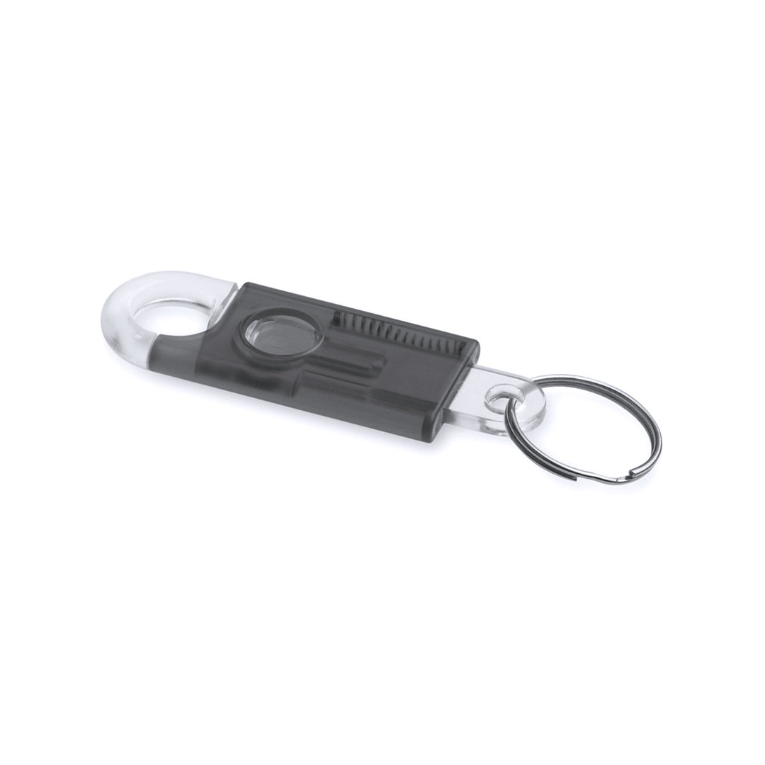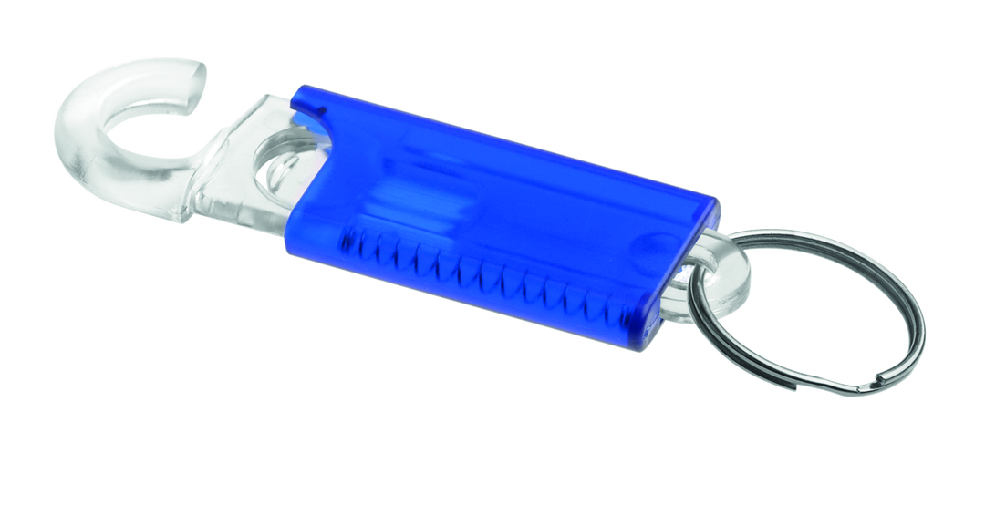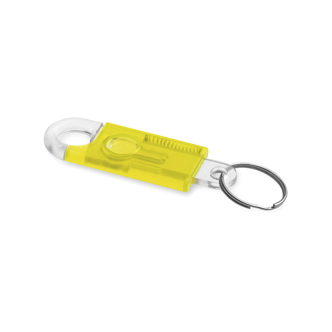 Original llavero con cuerpo translúcido en acabado bicolor transparente de vivos colores y sistema de fijación por mosquetón.