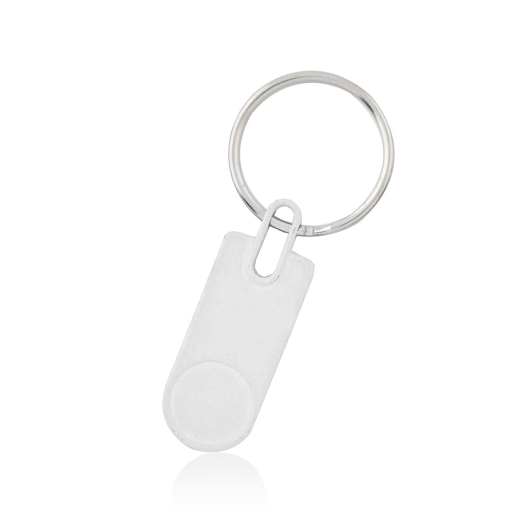 Llavero de divertido diseño de variados y vivos colores. Con cuerpo metálico troquelado especialmente diseñado para marcaje en doming/gota de resina.