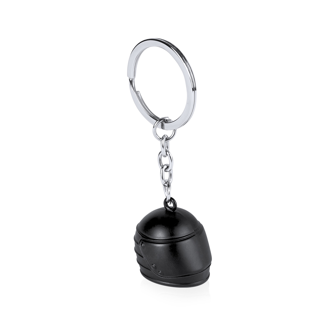 Llavero metálico en divertido diseño 3D de casco en variados y vivos colores.