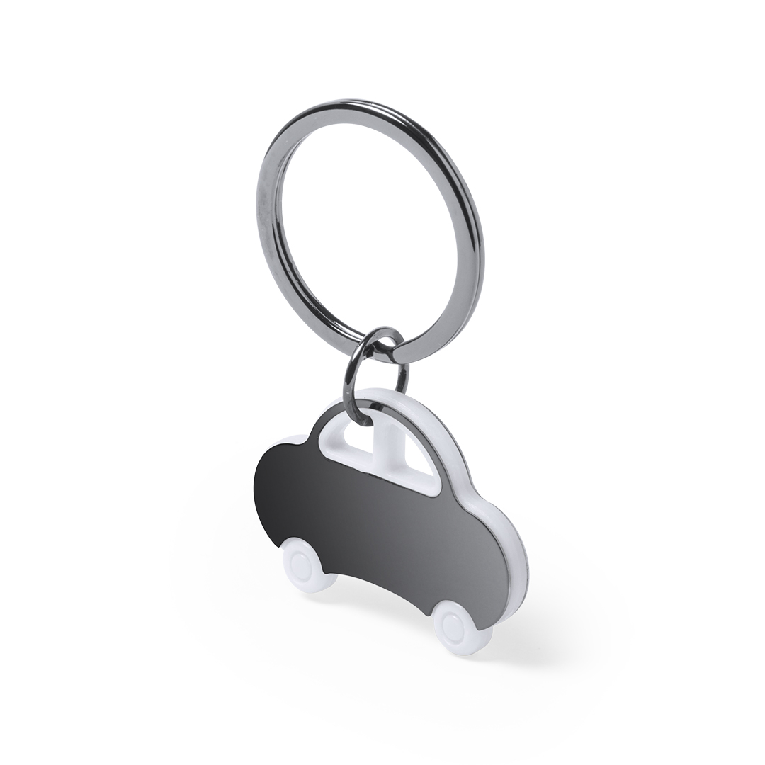 Llavero coche de diseño bicolor con cuerpo de acero inox en variada combinación de colores.
