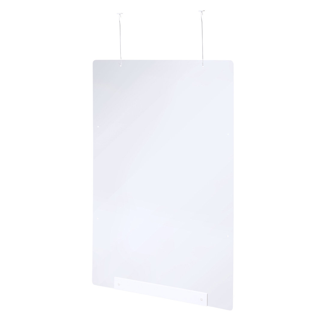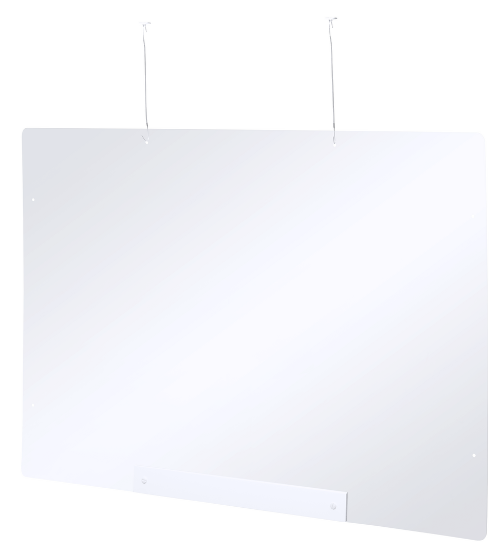 Mampara de protección colgante de 680 x 980 mm, diseñada para garantizar la máxima protección y separación de espacios. Sin necesidad de herramientas, de fácil y cómodo montaje individual. Ideal para todo tipo de negocios y lugares en los que se requiere