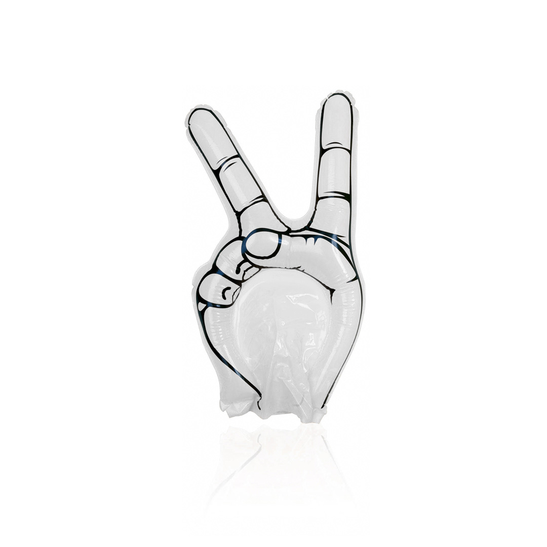 Divertida mano de animación victoria en resistente material LDPE de vivos colores. Reutilizable y con válvula de inflado incluida. Reutilizable. Válvula Inflado Incluida