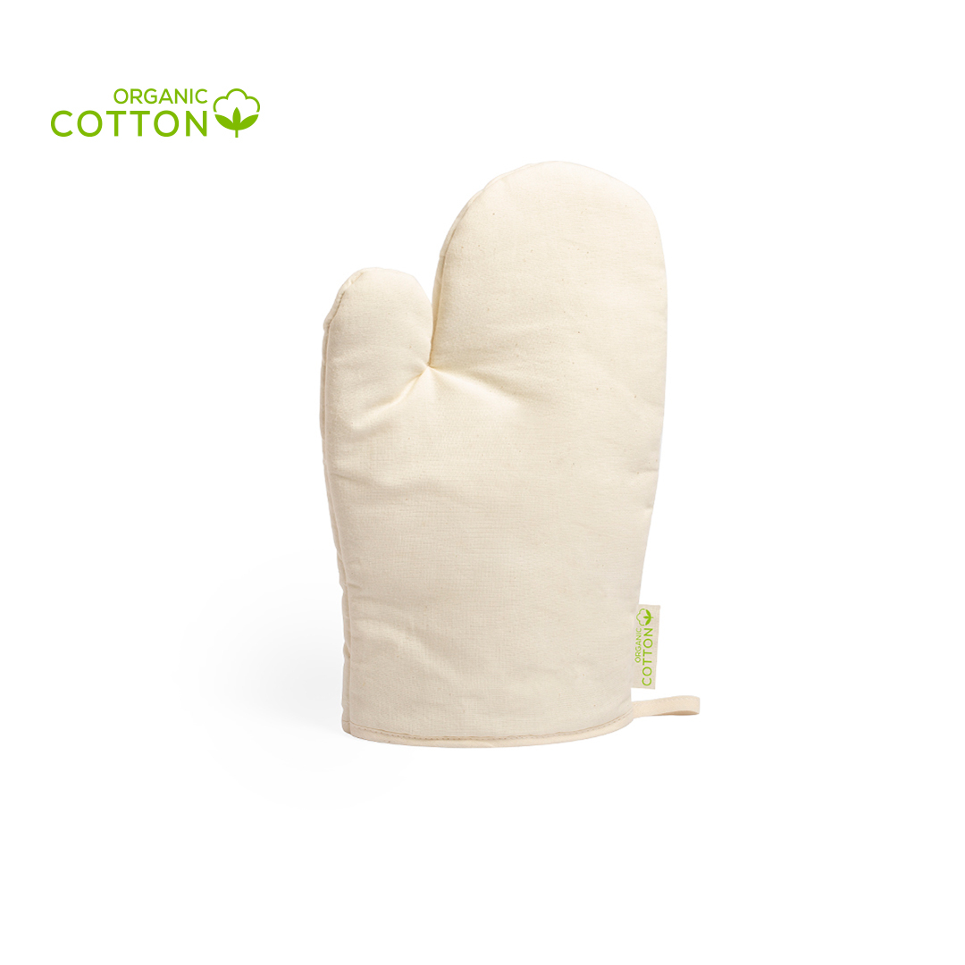 Manopla de cocina de línea nature. Fabricada en material 100% algodón orgánico de alta calidad. Con una cara lisa especialmente diseñada para impresión y cinta para colgar. Distintivo algodón orgánico en etiqueta. Una Cara Lisa para Impresión