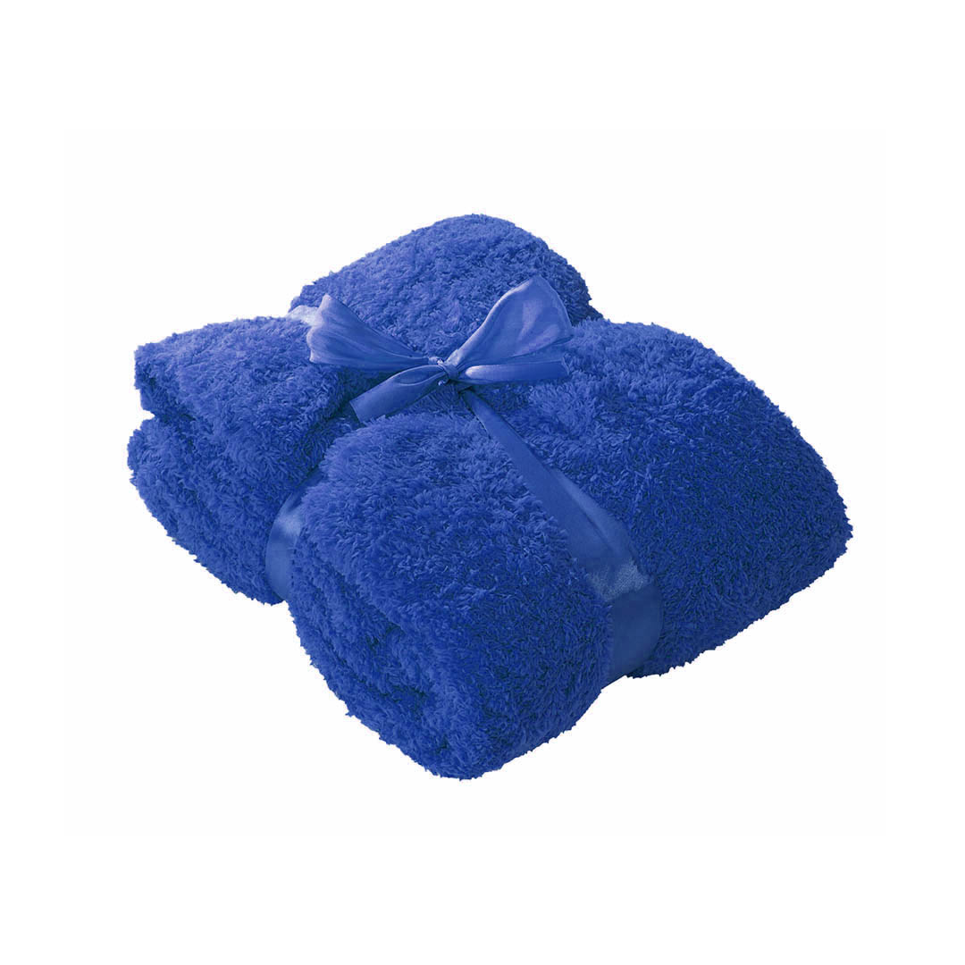 Manta de 130x160cm en variada gama de vivos colores. En material polar fleece anti-pilling de 260g/m2 y con cinta lazo a juego en suave poliéster. Anti-Pilling