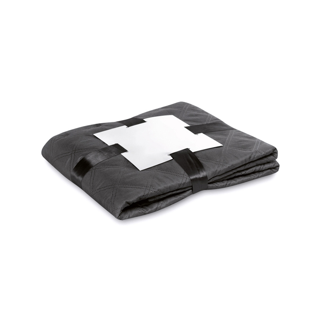 Manta de 130x160cm en variada gama de vivos colores en microfibra de 240g/m2. Presentada en cartón de color plateado y cinta lazo a juego en suave poliéster.