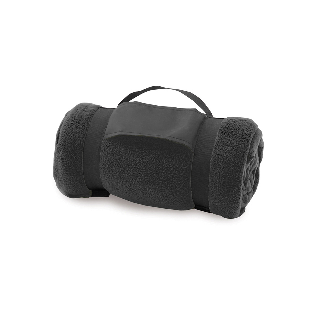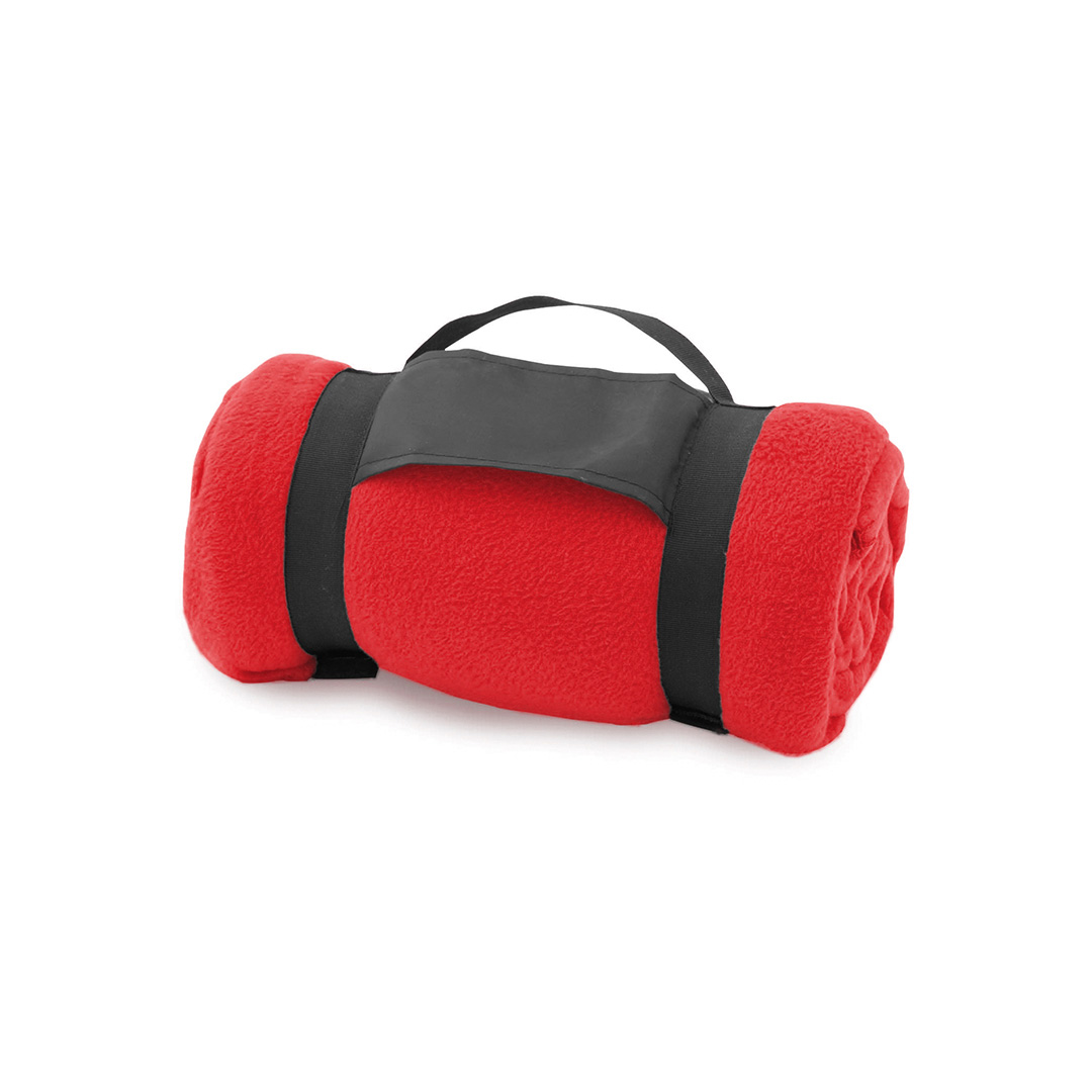 Manta de 130x160cm en variada gama de vivos colores. En material polar fleece anti-pilling de 200g/m2 y con asa de transporte de cierre de velcro en suave poliéster. Anti-Pilling