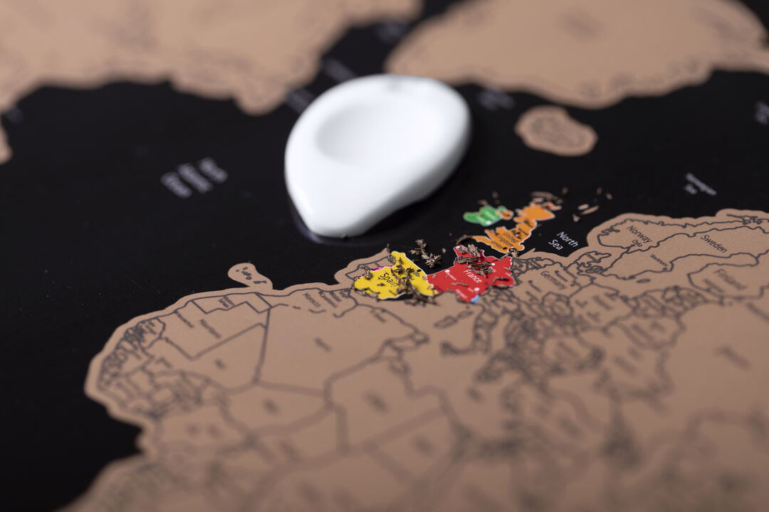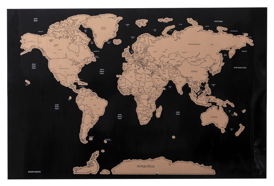 Mapamundi de línea nature para los más viajeros. Fabricado en papel laminado, basta con rascar la superficie del país que se desee para que aparezca como marcado. Incluye rascador y viene presentado en un atractivo estuche de cartón de diseño eco. Rascador Incluido