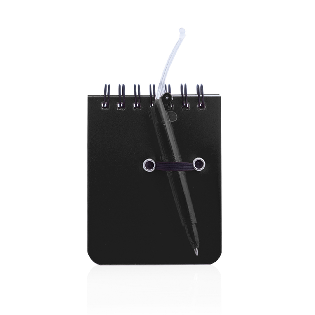 Minilibreta de anillas en divertidos colores con minibolígrafo en tapa a juego. De 60 hojas con distribución a una raya. 60 Hojas. Bolígrafo Incluido