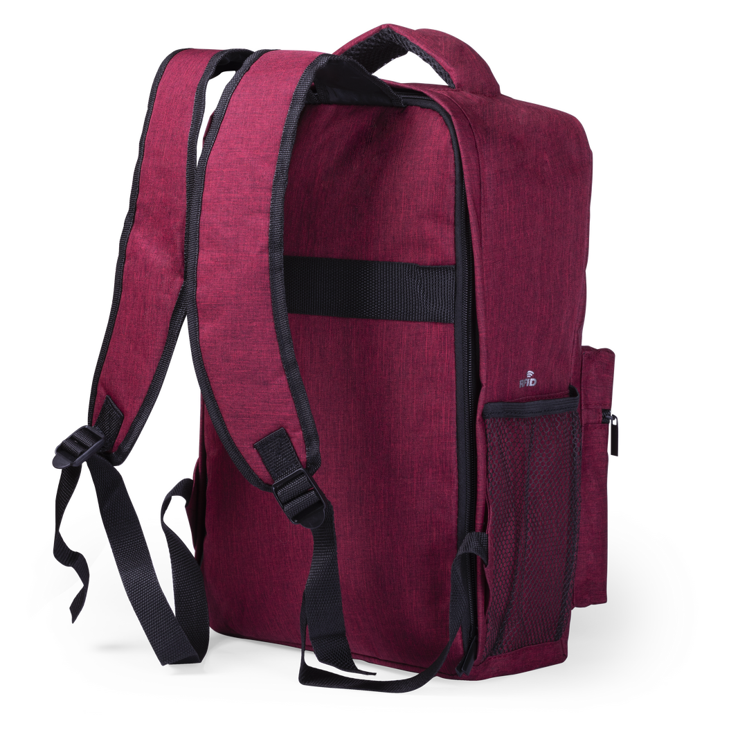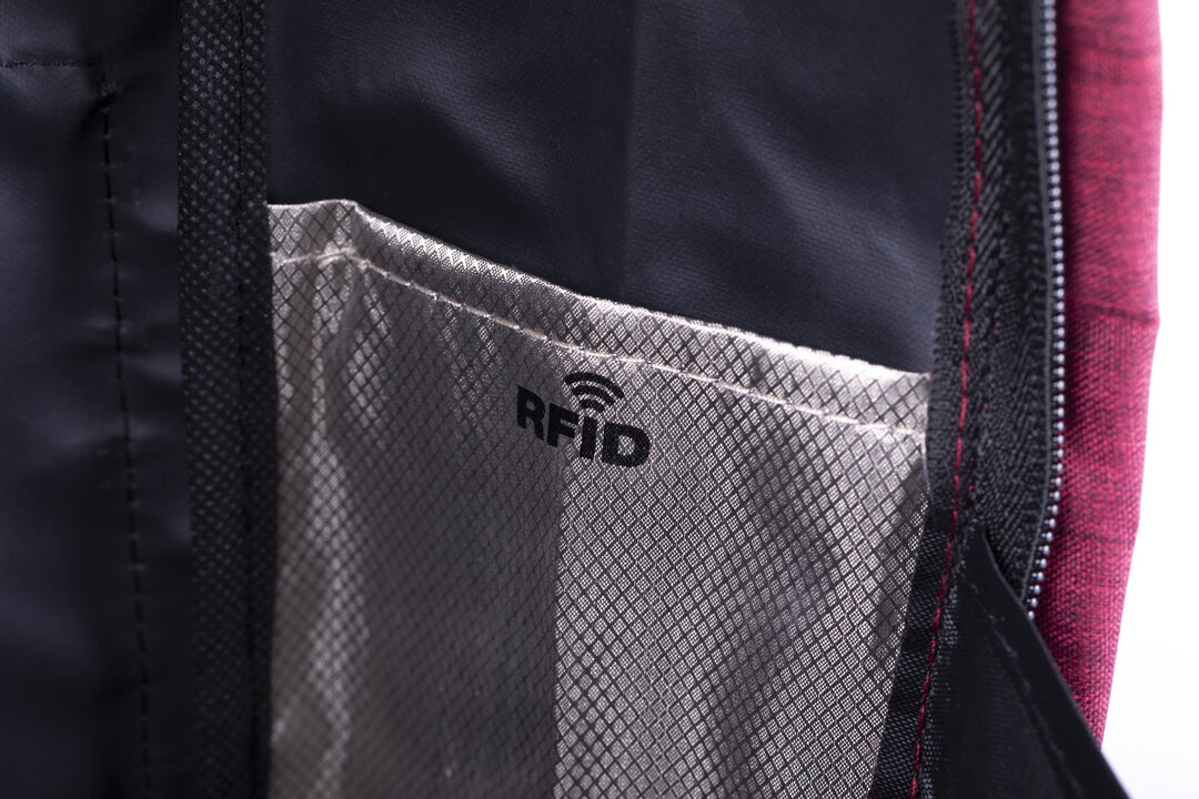 Mochila antirrobo en resistente material poliéster 300D. Con bolsillo antirrobo en la espalda para guardar objetos de valor. Compartimento interior con salida USB para conexión de powerbank -no incluido-. Incluye cable micro USB para total comodidad en la Protector RFID. Conexión USB. Bolsillo Acolchado para Portátil y Tablet. Parte Trasera y Cintas Acolchadas