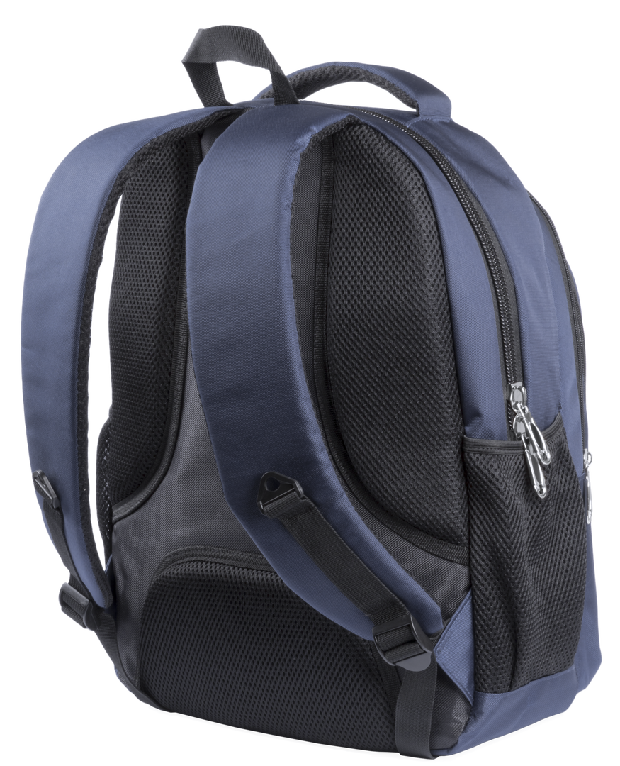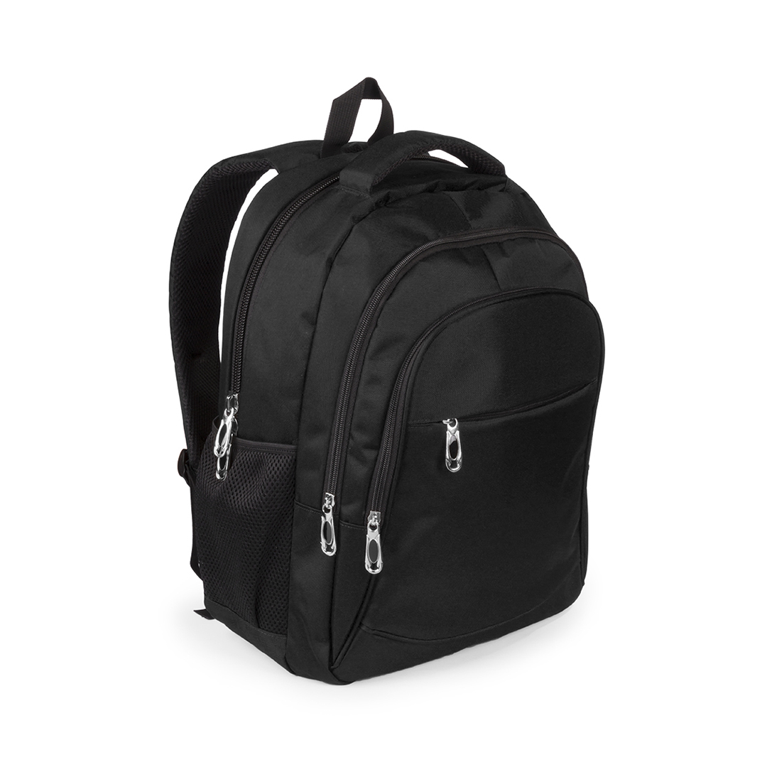Mochila de resistente nylon 600D de sobrio diseño con cierre de cremallera, bolsillos frontales y asa reforzada doble. Con acolchado ergonómico en espalda y cintas de hombros, incluye compartimento interior acolchado para ordenador portátil de hasta 15 pu Bolsillo Acolchado para Portátil. Parte Trasera y Cintas Acolchadas